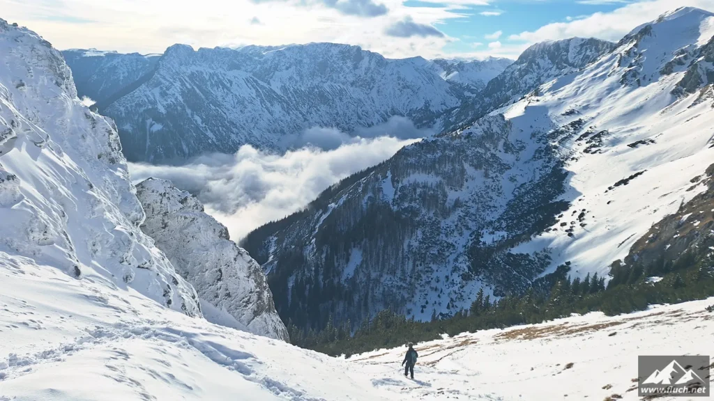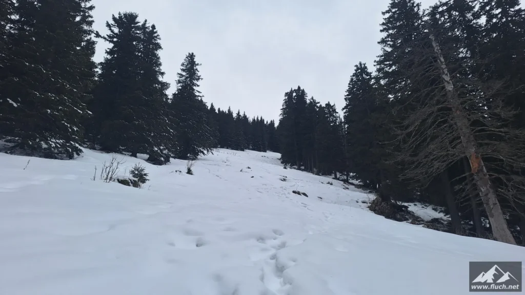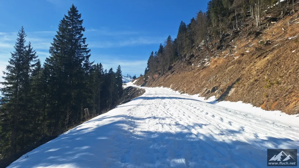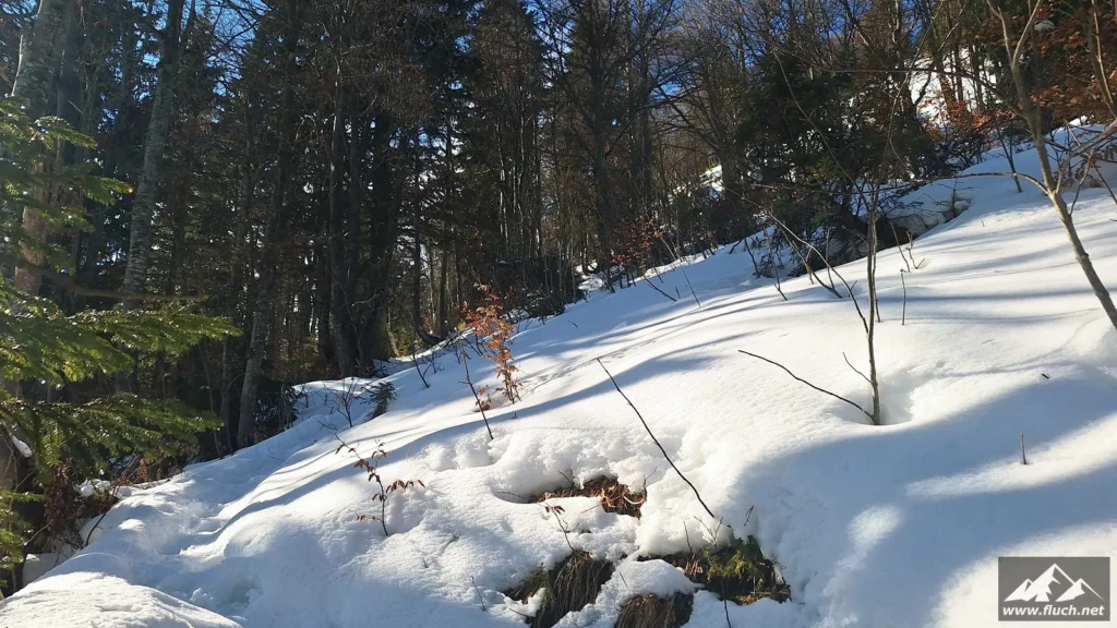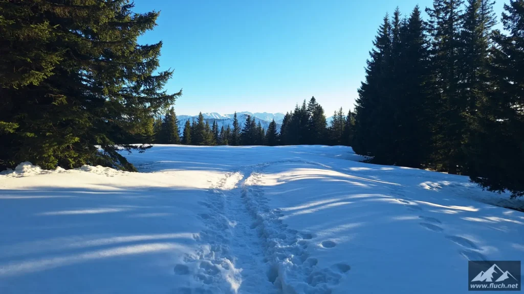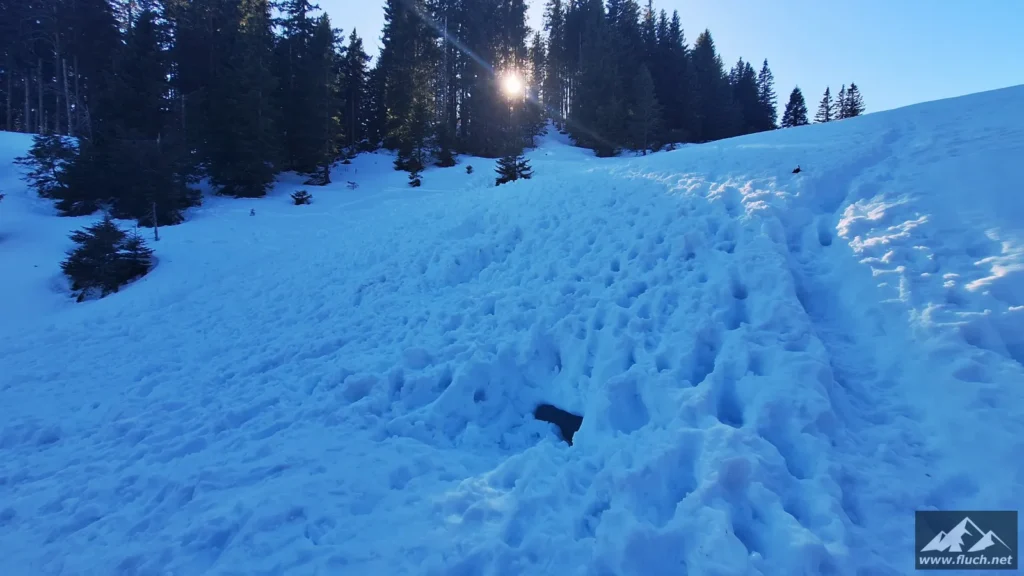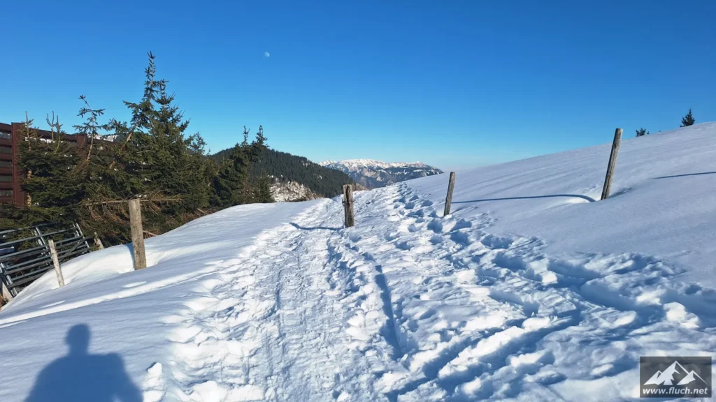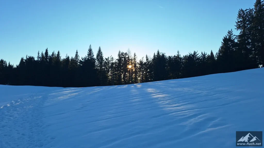 Eine schnelle Schneeschuhtour nach der Arbeit führte mich heute vom Zellerrain hinauf zur Brunnsteinmauer, hier waren wir im Jahr 2023 schon einmal.