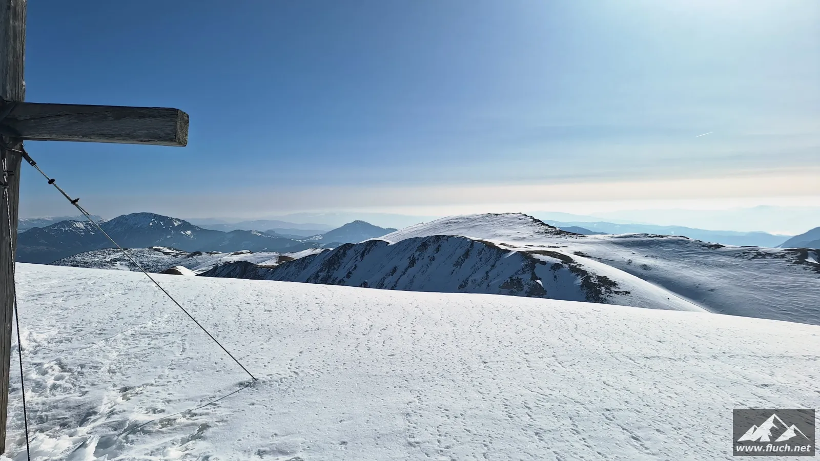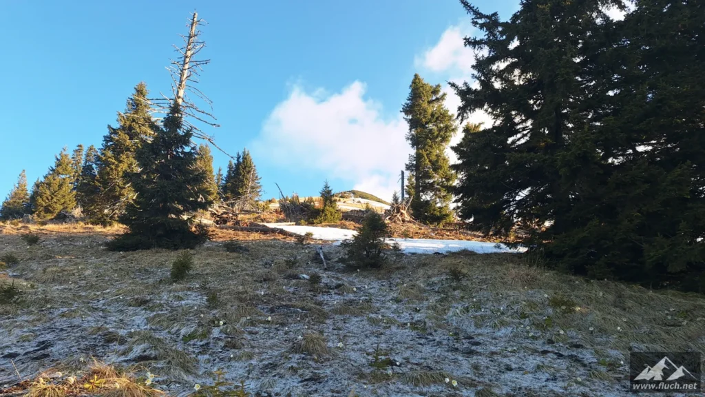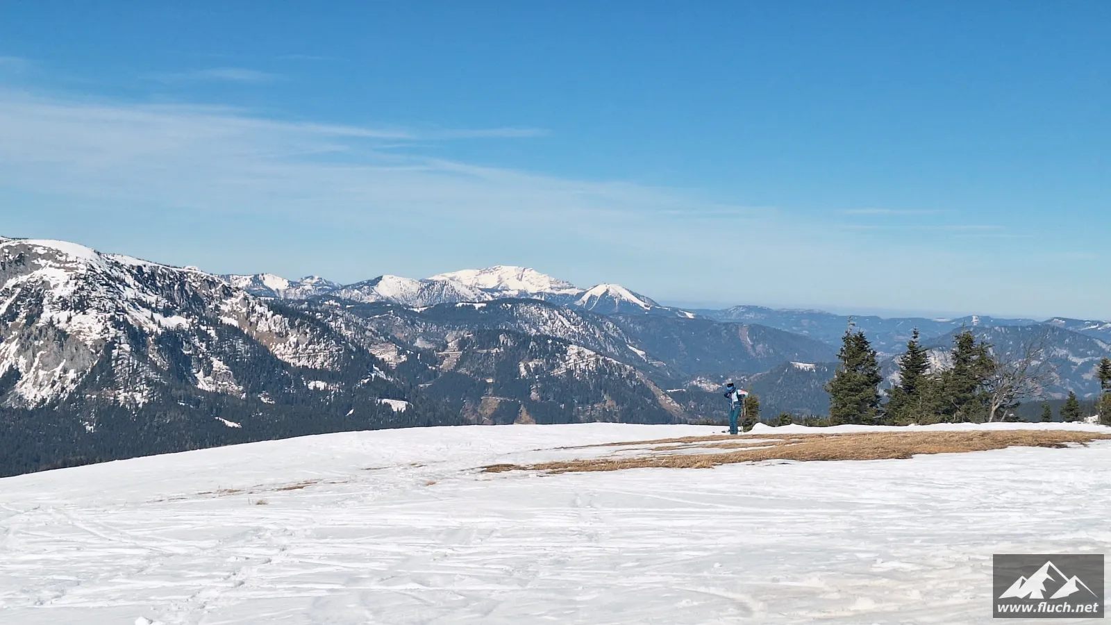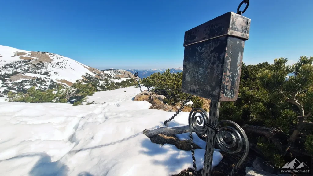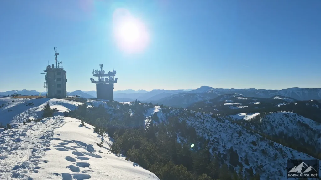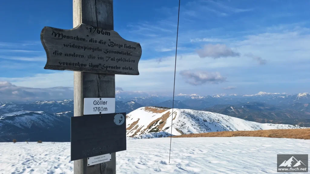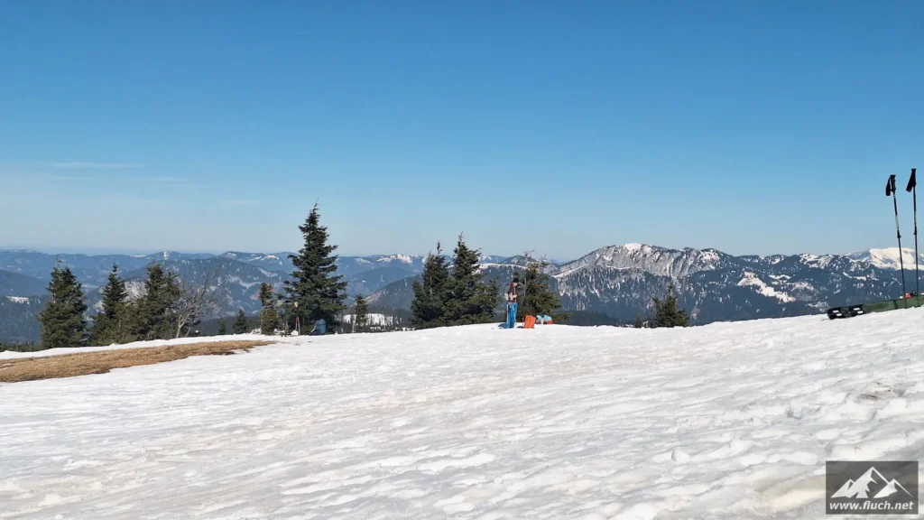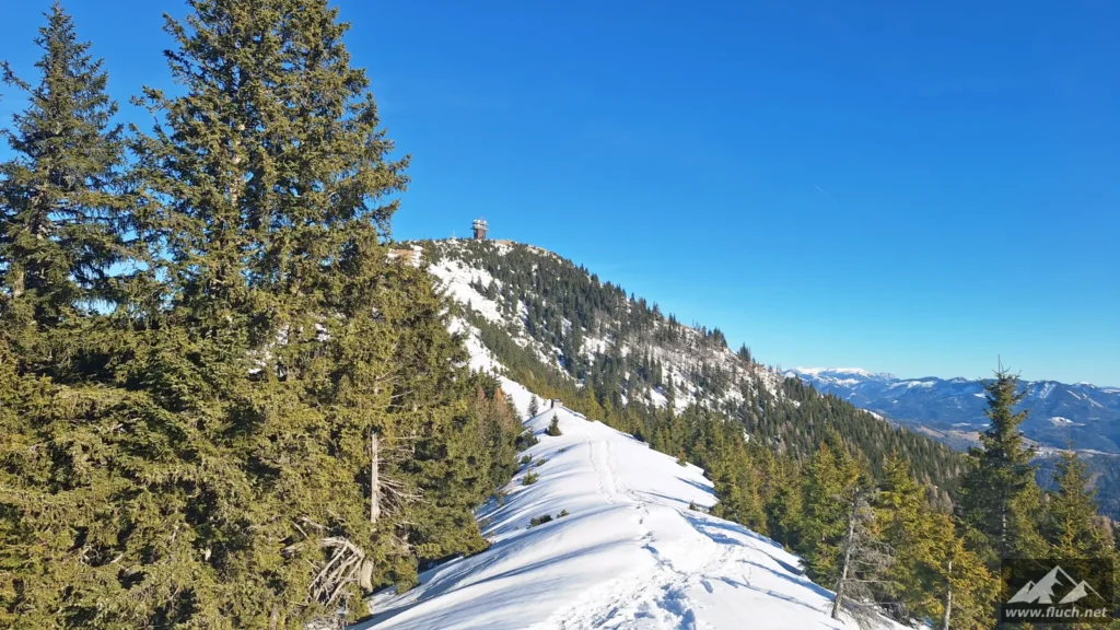 Weil es noch nicht so spät war entschloss ich mich spontan noch die Hohe Wetterin als „Zugabe“ zu besuchen. Also bin ich mit dem Auto zum Niederalpl Pass gefahren und von dort dann mit den Schneeschuhen hinauf zum Gipfel der Hohen Wetterin. Über eine halbe Stunde lang war ich dann komplett alleine am Gipfel, also genoss ich die wärmende Sonne und die Ruhe (Sonnenbrand inklusive).