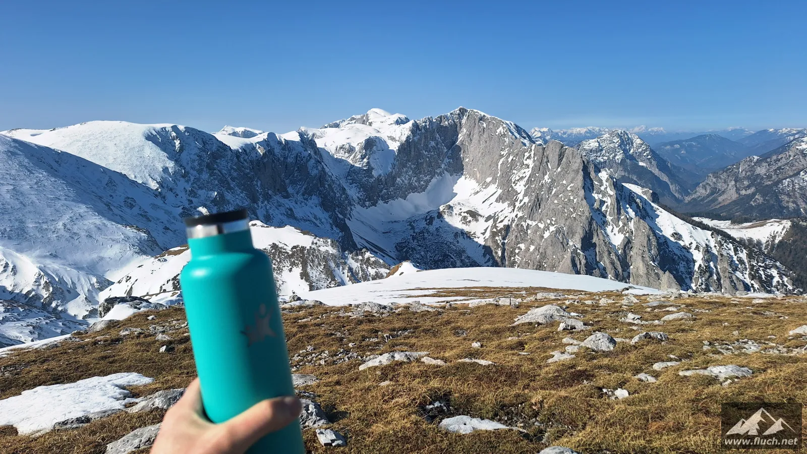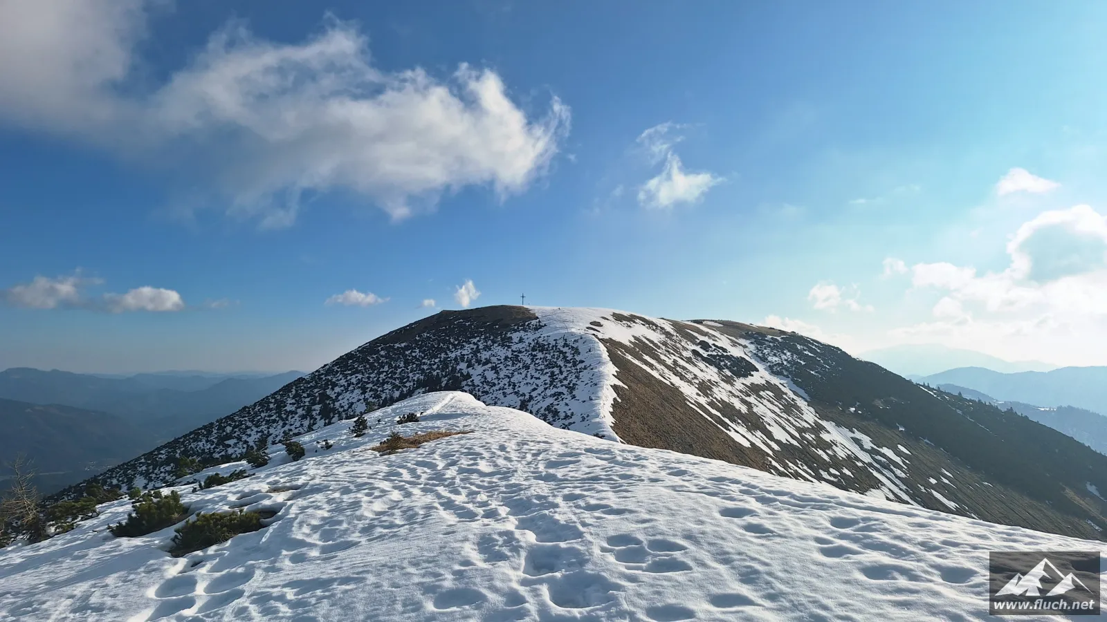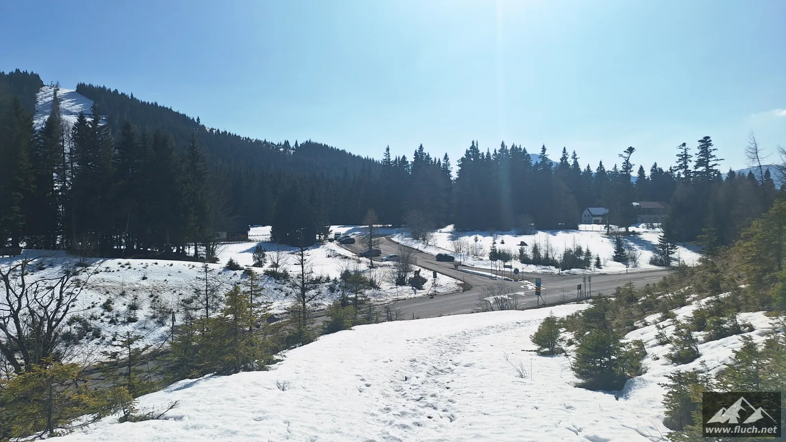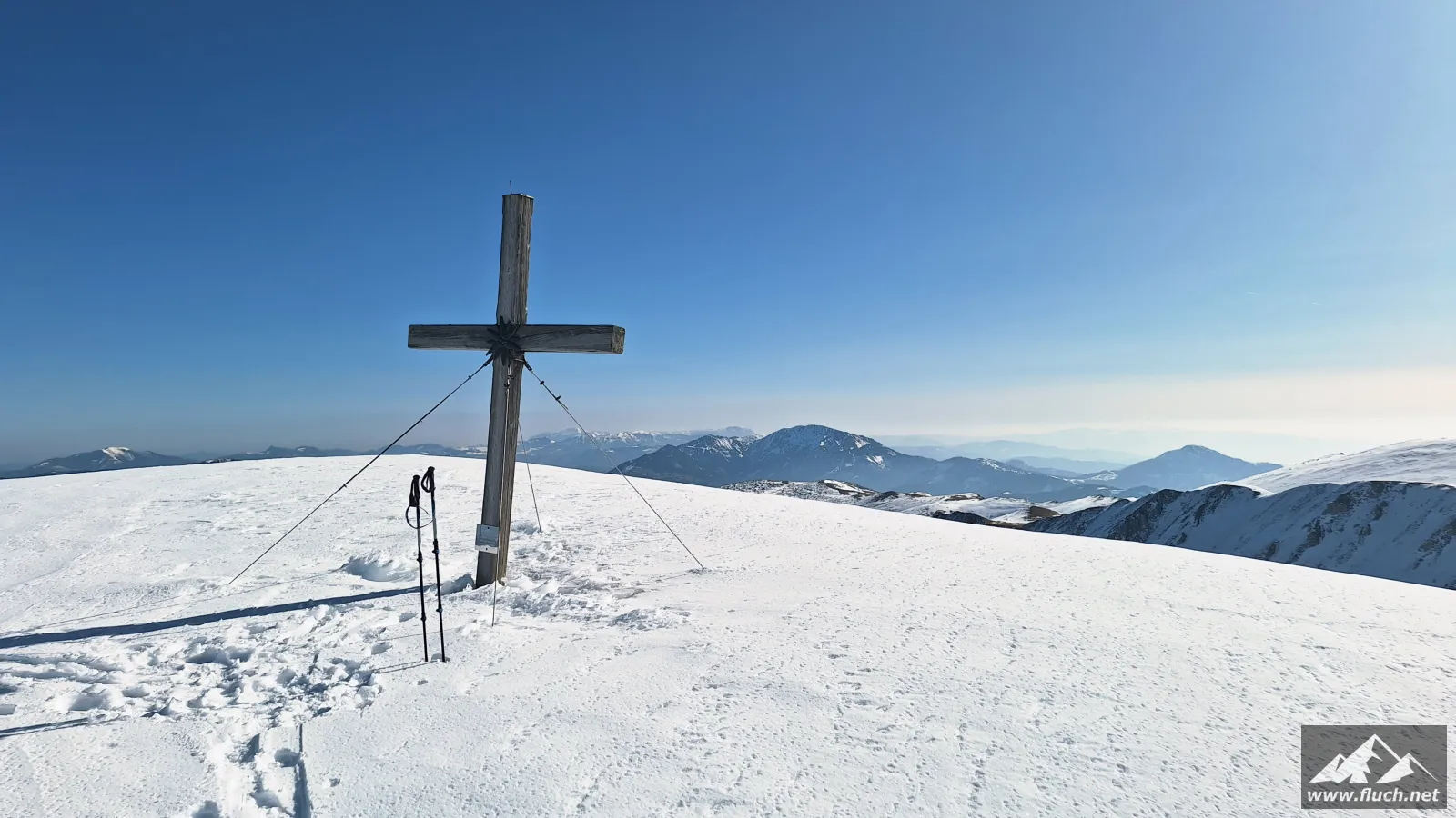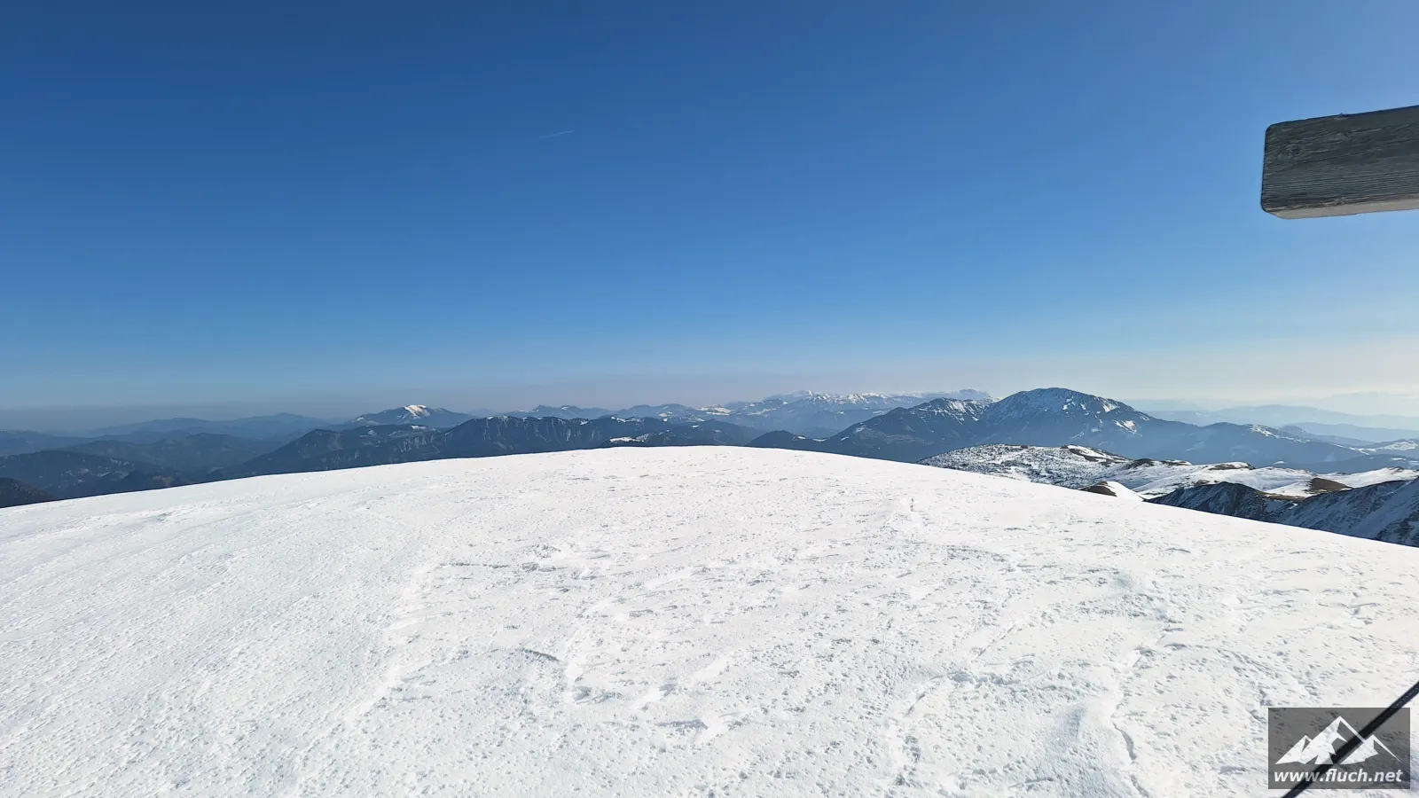 Weil es noch nicht so spät war entschloss ich mich spontan noch die Hohe Wetterin als „Zugabe“ zu besuchen. Also bin ich mit dem Auto zum Niederalpl Pass gefahren und von dort dann mit den Schneeschuhen hinauf zum Gipfel der Hohen Wetterin. Über eine halbe Stunde lang war ich dann komplett alleine am Gipfel, also genoss ich die wärmende Sonne und die Ruhe (Sonnenbrand inklusive).