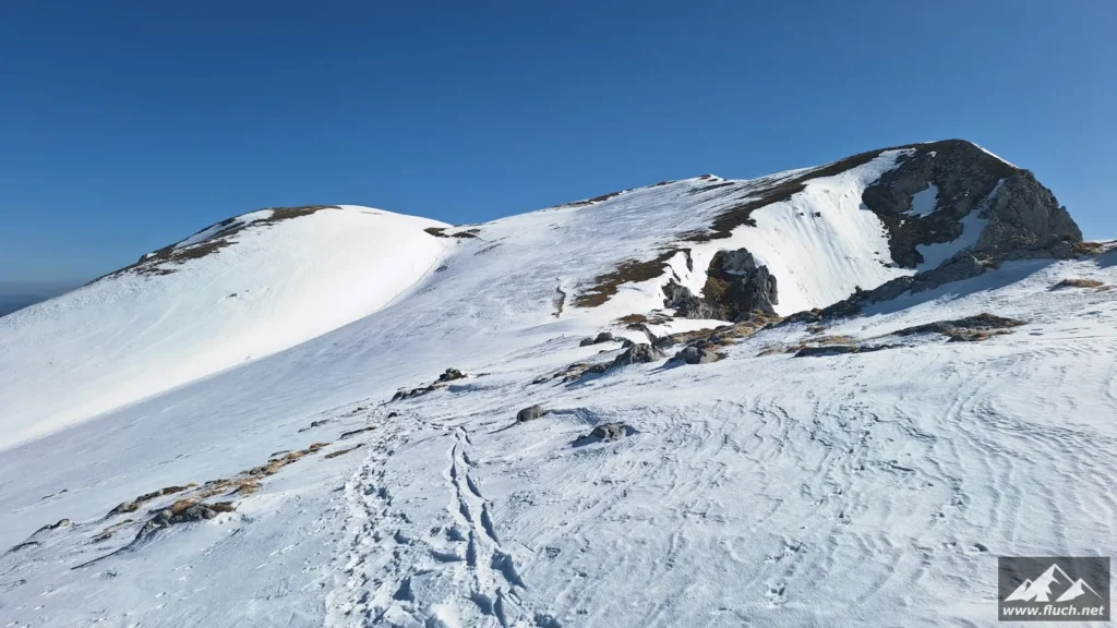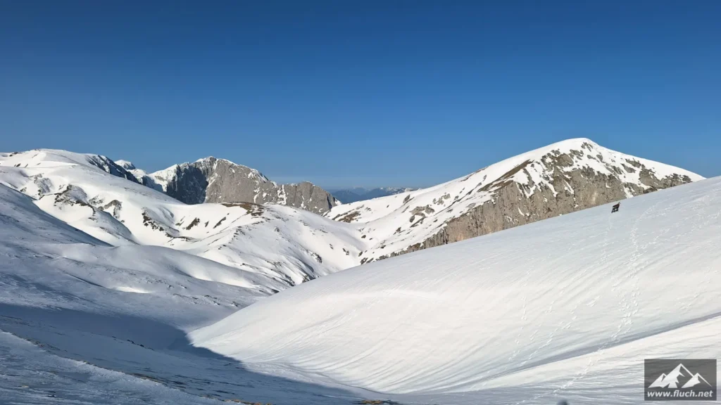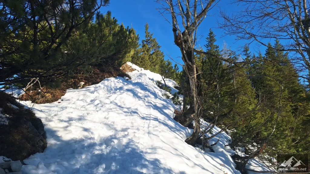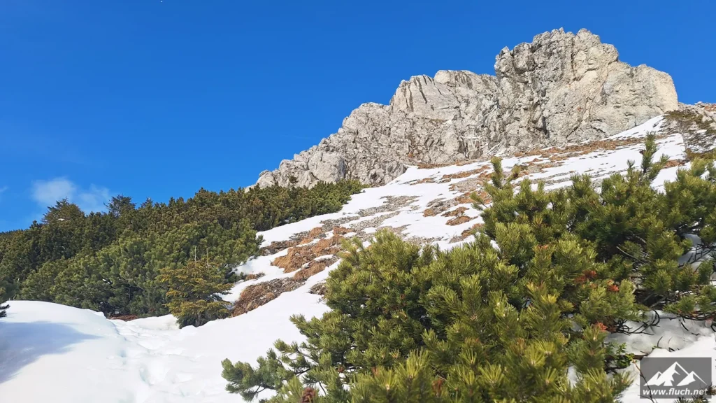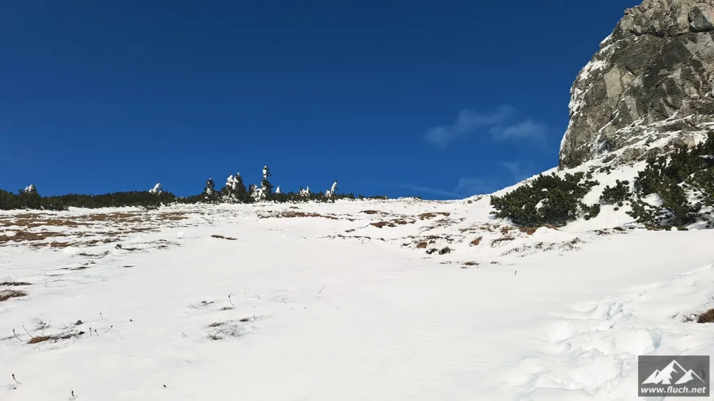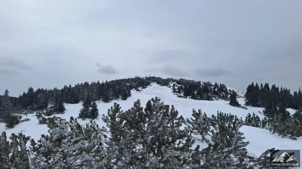 Winterbesteigung der Seeleiten vom Seeberg Pass aus. Es liegt im freien Gelände doch einiges an Schnee, oben ist aber viel abgeweht und mit normalen Bergschuhen gut zu gehen. Weiter oben auf der Hochfläche sind aber Grödel oder Steigeisen notwendig.