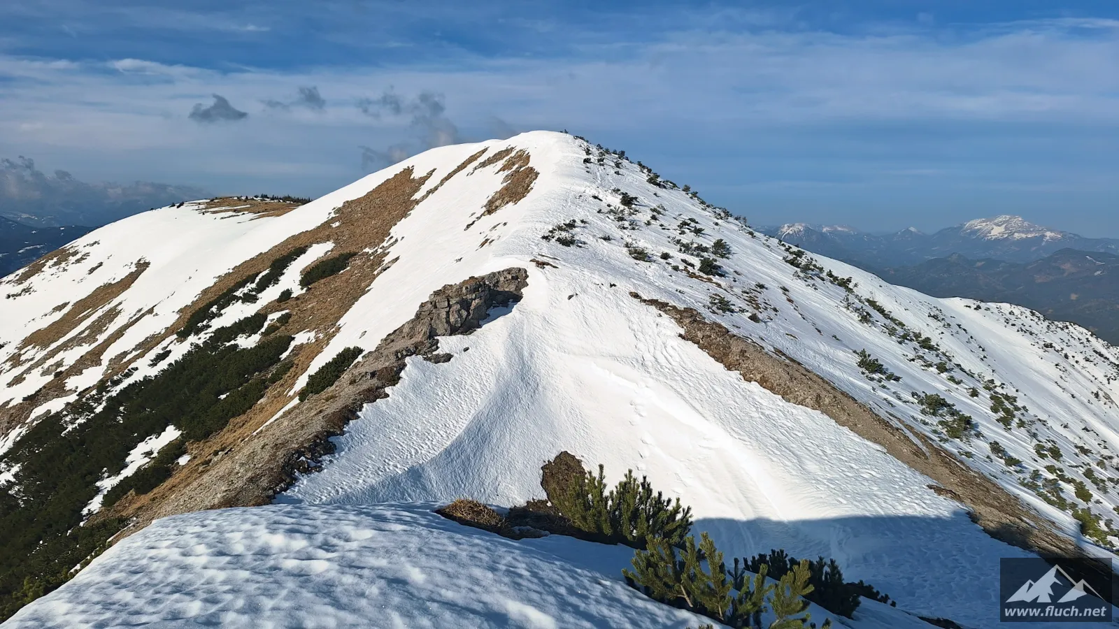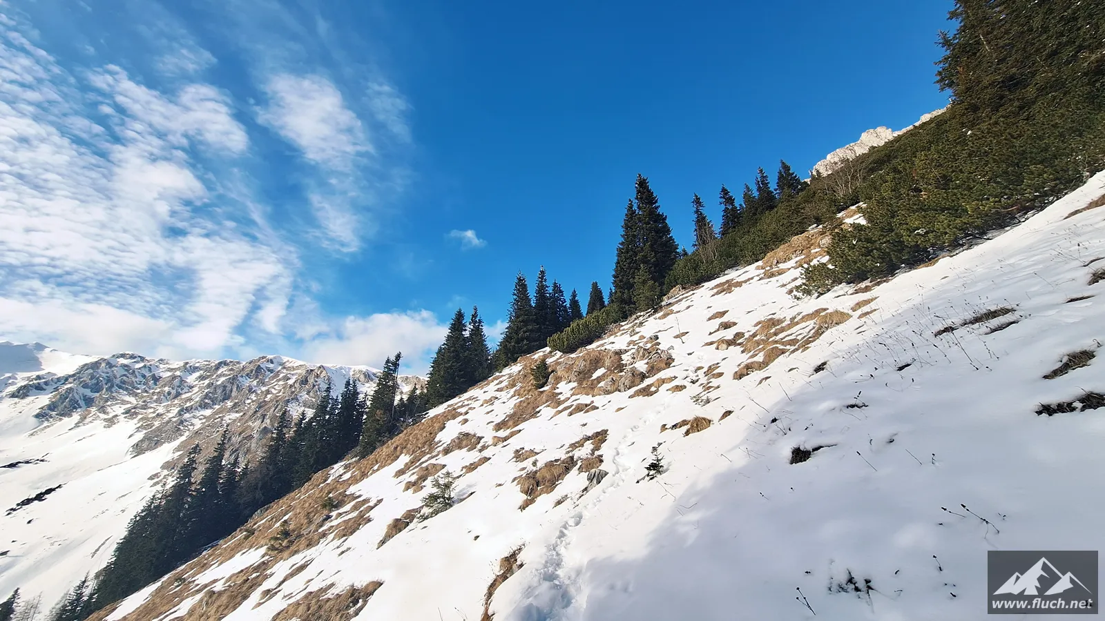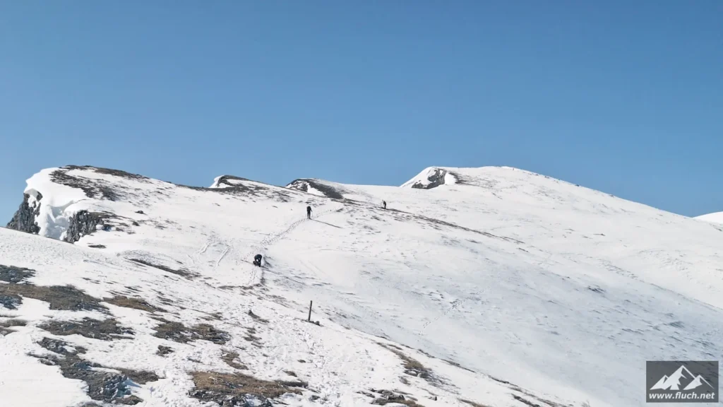 Winterbesteigung der Seeleiten vom Seeberg Pass aus. Es liegt im freien Gelände doch einiges an Schnee, oben ist aber viel abgeweht und mit normalen Bergschuhen gut zu gehen. Weiter oben auf der Hochfläche sind aber Grödel oder Steigeisen notwendig.