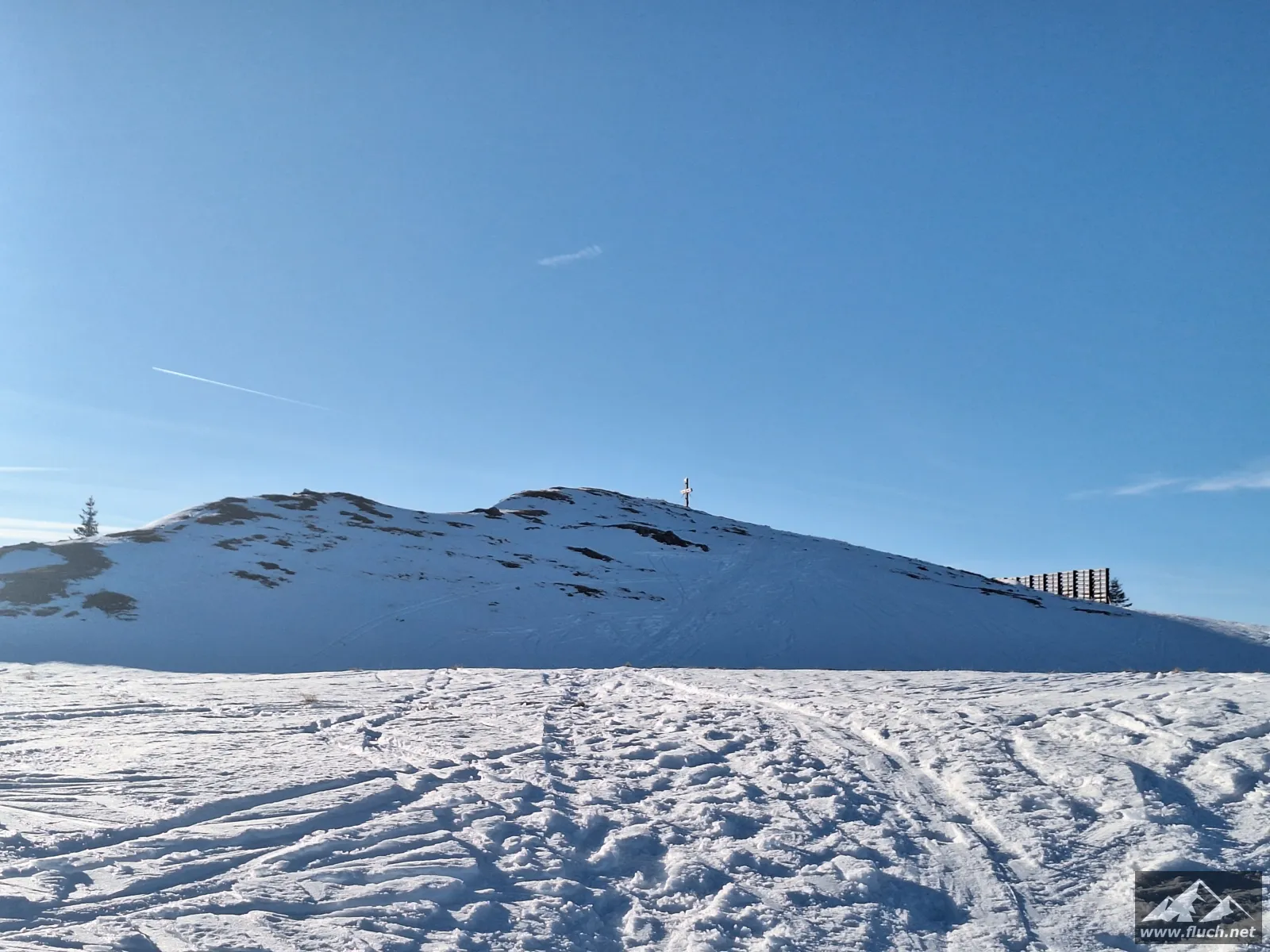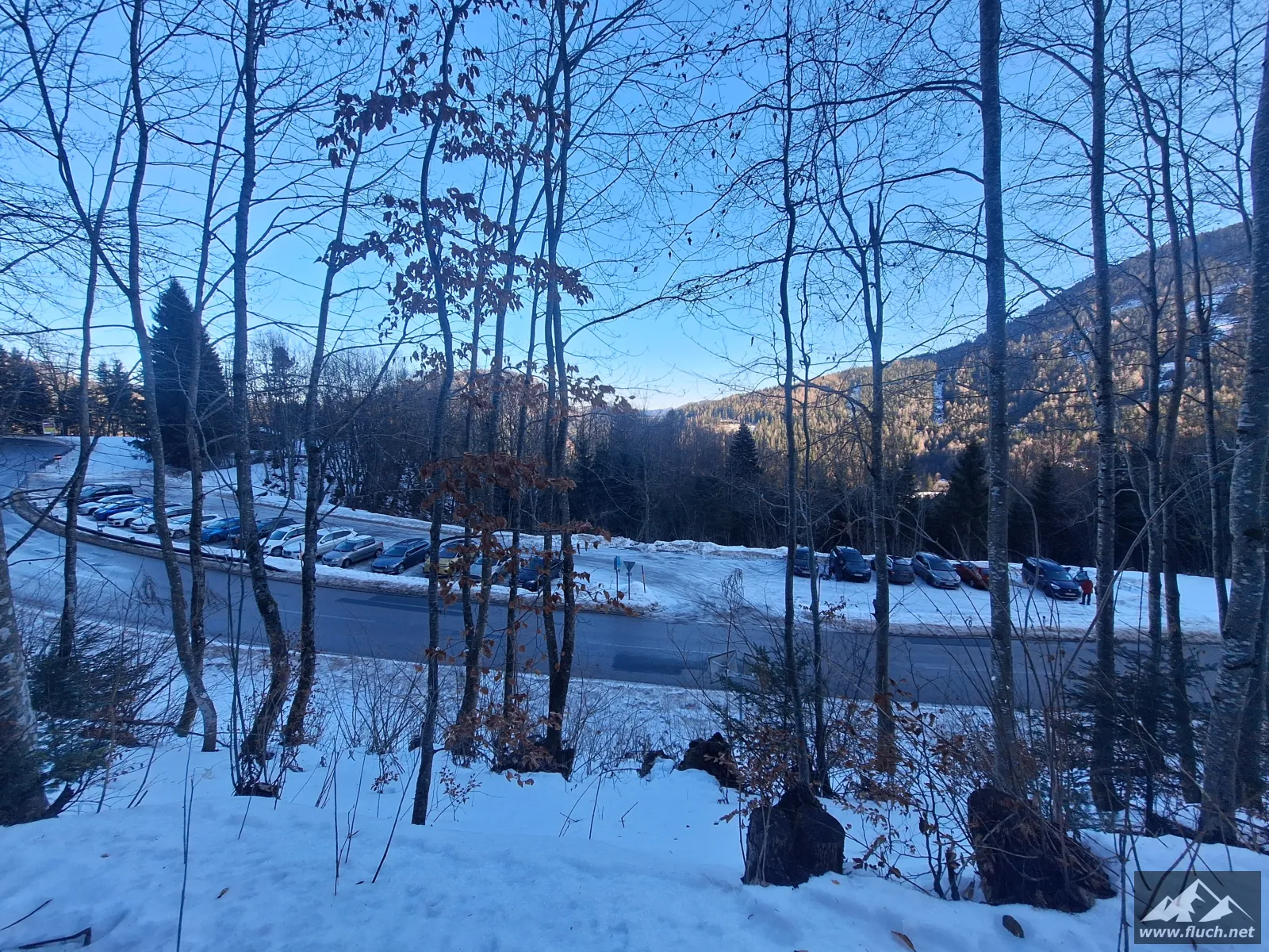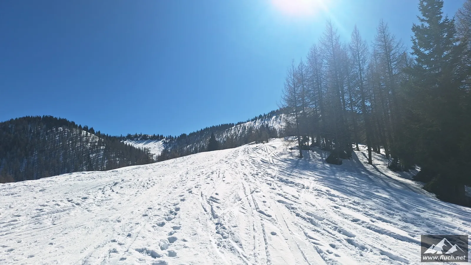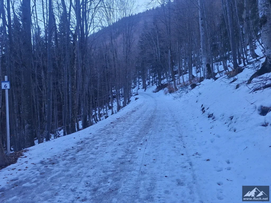 Eine kleine Erkundungstour auf unseren Hausberg stand heute am Programm. Von der Rasing ging es entlang der Straße inkl. einiger steiler Abkürzungen hinauf zum Gipfel. Spuren waren schon vorhanden, das erleichterte das vorankommen.