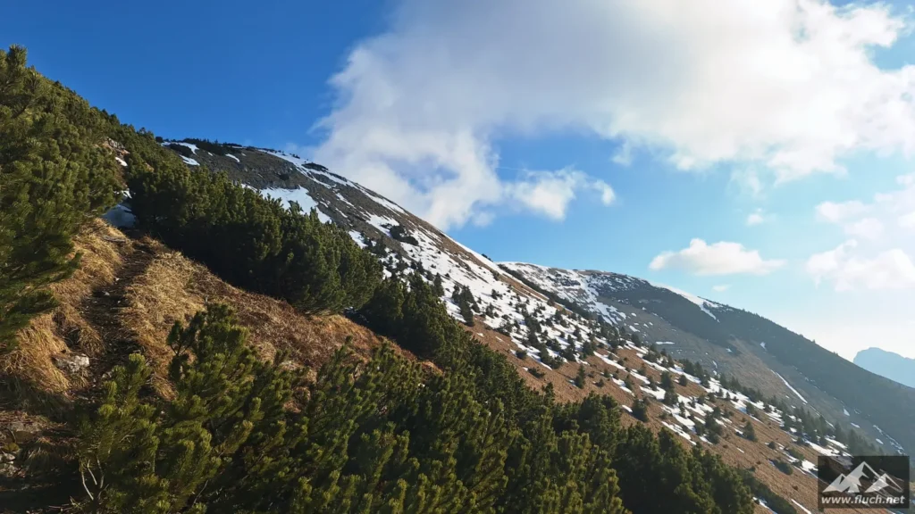 Vom Lahnsattel ging es heute bei stürmischen Wind wieder einmal hinauf auf den Göller. Oben erwarteten mich dann Orkanböen, deshalb fiel der Gipfelaufenthalt nur sehr kurz aus.