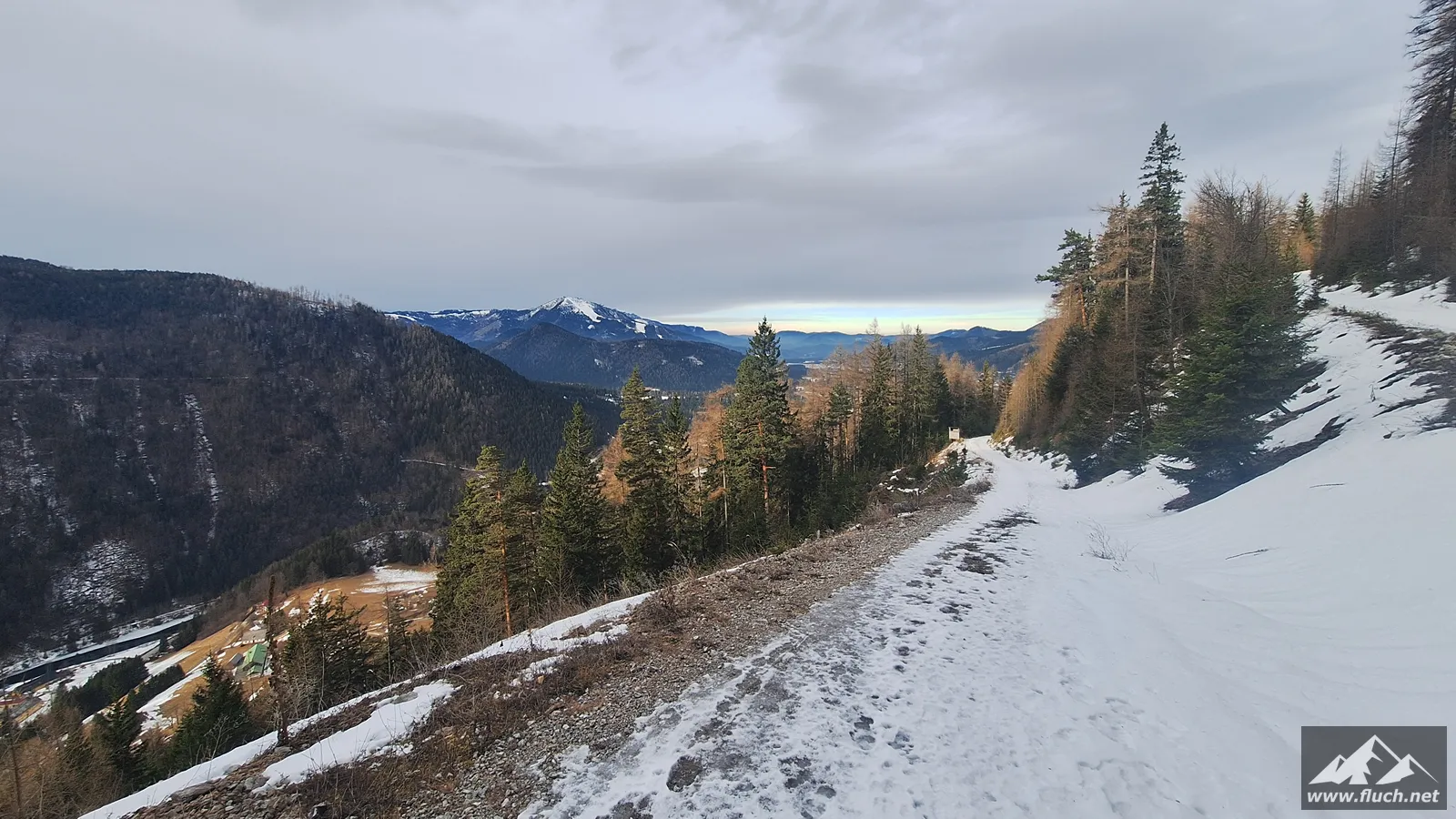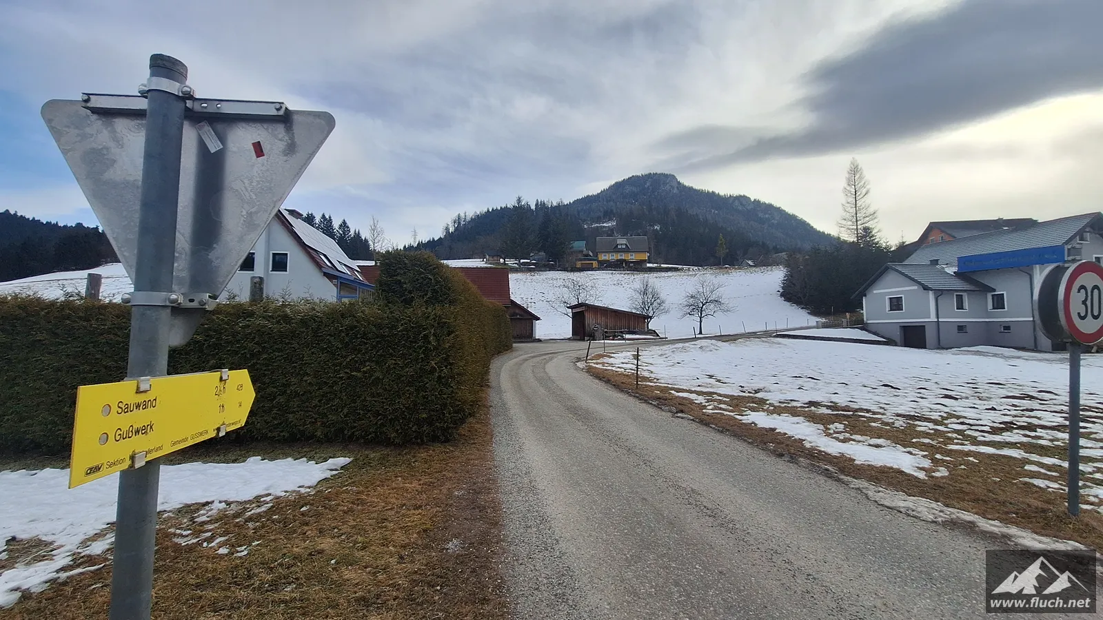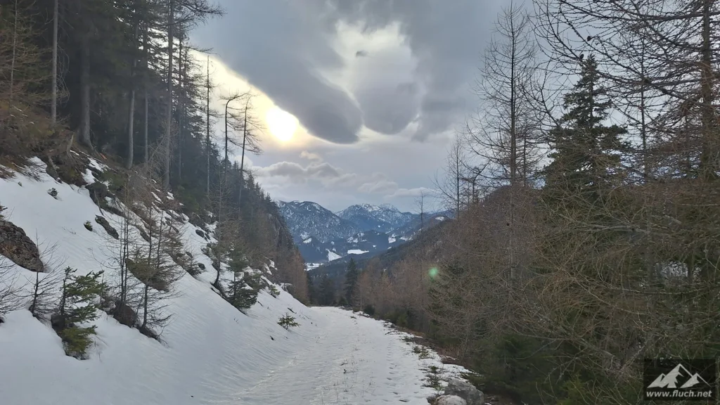 Start in Rasing, Blick zum ZielRückblick zum AusgangspunktZuerst entlang der StraßeBereits bei der Forststraße, hier liegt schon SchneeWenige Spuren sind im unteren Bereich vorhandenSchön zu gehenAusblickZwischendurch sehr wenig Schnee am WegErster Blick nach MariazellEine steile Abkürzung durch den WaldDer Weg ist nur im Sommer empfehlenswertDer Schnee wird mehrDie Spuren werden wenigerWieder auf einer Abkürzung unterwegsBlick nach unten zur StraßeBei der letzten KehreBlick ins Mariazeller LandUnd wieder eine AbkürzungWeiter durch den WaldDer letzte AufschwungGipfelkreuz in SichtAngekommen am Gipfel der SauwandGipfelselfie, eh klar 😉Tolles PanoramaBlick ins SalzatalBlick ins FallensteinertalBlick ins Mariazeller LandWieder bei der AbkürzungDie Schlechtwetterfront kommt langsam anWieder herunten am vereisten SpazierwegEin letzter Blick zurück