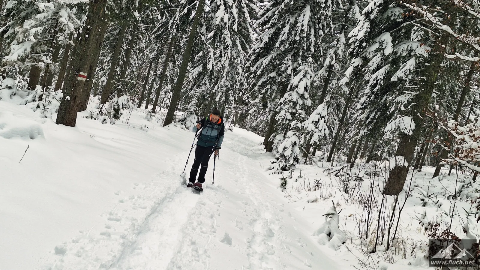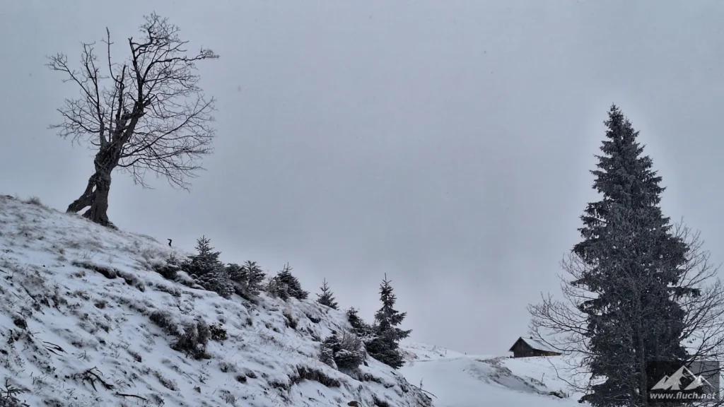 Meine erste Schneeschuhwanderung seit über zwei Jahren führte mich heute vom Brandhof hinauf über die Leitenalm und weiter zur Graualm. Von dort dann noch ein Stück weiter in Richtung Prinzensteig, dort dann aber Abbruch wegen orkanartigen Windböen und dem dichten Nebel. Eigentlich wollte ich ja zumindest bis zur Abzweigung zur Seeleiten auf der Hochfläche weitergehen, das habe ich dann aber wegen der schlechten Wetterverhältnisse sein lassen.