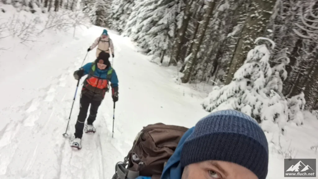 Beim Aufstieg vom Zeller Kreuz war etwas Spurarbeit zu leisten, weiter oben waren dann mehr Spuren vorhanden und das vorankommen im tiefen Neuschnee wurde einfacher. Leider war der Gasthof auf der Schanz wegen Stromausfällen geschlossen, so fiel unsere Pause leider aus und wir machten uns direkt auf den Rückweg zum Zeller Kreuz.