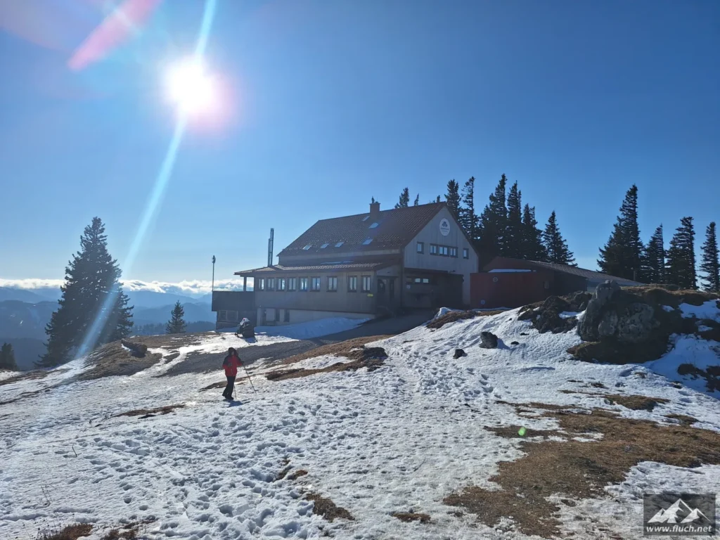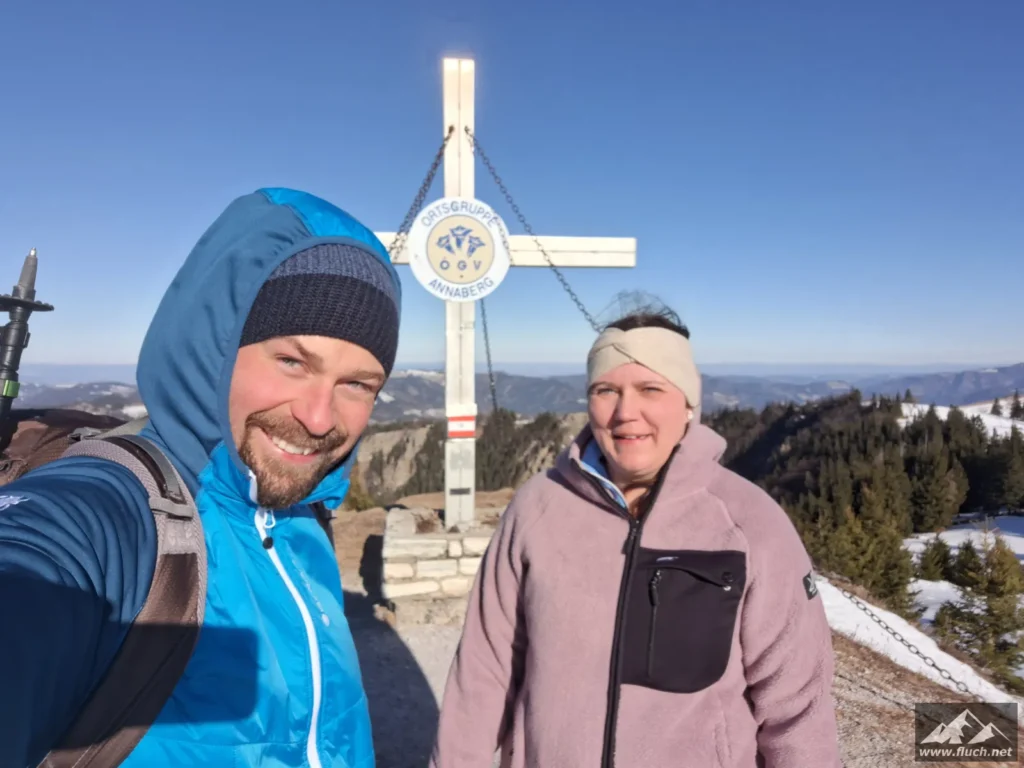 Die Sonne haben wir heute gesucht und am Tirolerkogel sind wir fündig geworden. Von Annaberg ging es über die komplett vereiste Forststraße hinauf, ab der Wegkreuzung am „Gscheid“ machte sich aber der starke Ostwind bemerkbar. Am Gipfel selbst wehte der Wind orkanartig, deshalb machten wir es uns im Annaberger Haus bei einem guten Mittagessen gemütlich. Abstieg wie Aufstieg.