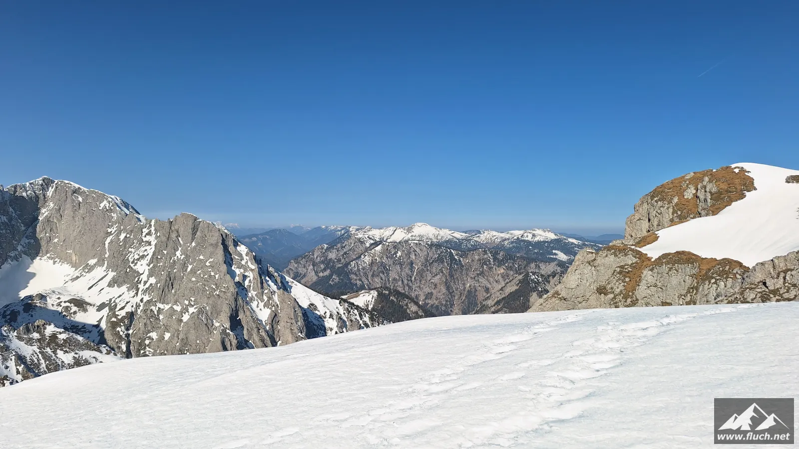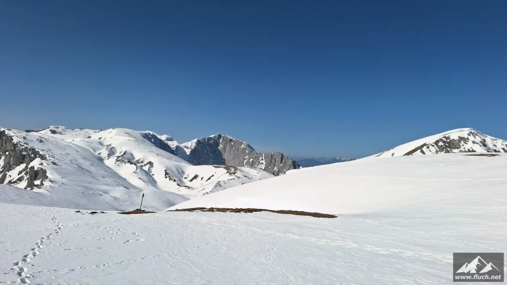 Der erste Hochschwab 2.000er in diesem Jahr. Heute ging es vom Seeberg Pass auf die Seeleiten hinauf und über die Hochfläche weiter zur Hohen Weichsel. Grödel waren fast auf der gesamten Tour Pflicht, im Abstieg waren dann auch die Schneeschuhe sehr hilfreich im tiefen und weichen Schnee. Das war heute der bis jetzt anstrengendste Abstieg von der Seeleiten herunter, bei jedem zweiten Schritt mindestens bis zu den Knien eingesunken und sehr rutschig.