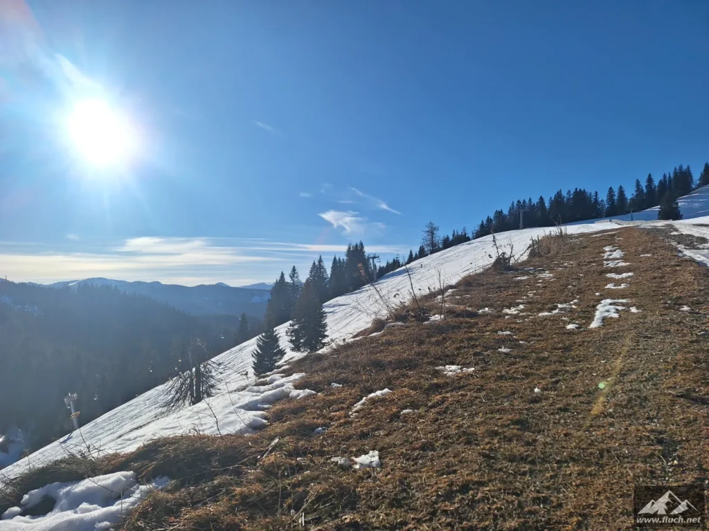 Und wieder die hohe Wetterin, das Skigebiet Niederalpl hat nach ein paar Tagen Liftbetrieb schon wieder geschlossen, nur der Sohlenalmlift fährt noch. Sabine war heute auch wieder dabei, das war ihre erste Wanderung heuer.