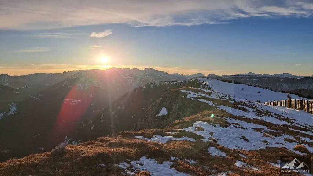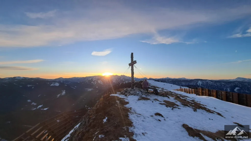 Und wieder die hohe Wetterin gemeinsam mit Sabine bei Minusgraden und eisigem Wind. Heute sind wir später gestartet, dafür haben wir einen schönen Sonnenuntergang am Gipfel erlebt.