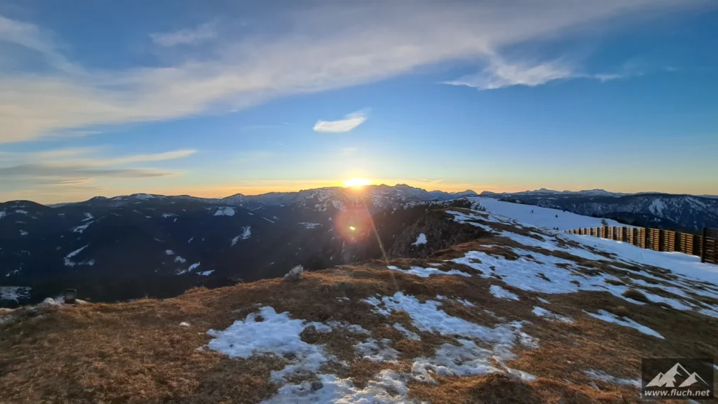 Leicht bewölkter Start am NiederalplDie Forststraße wurde präpariertKurz vor der WetterinalmBlick hinunter zur WetterinalmNur noch wenige Meter zum GipfelAngekommen am Gipfel der WetterinBlick zum ÖtscherDie Wolken ziehen abSabine genießt die letzten SonnenstrahlenBlick ins HochschwabgebietEin tolles PlatzerlBlick ins Mariazeller LandEin Gipfelselfie, eh klar 😉Die Sonne geht langsam über der Aflenzer Staritzen unterBlick zur Tonion und ins MürztalAuch die Fernsicht ist sehr gutDie Sonne verschwindetSonnenuntergangDie letzten SonnenstrahlenDie Sonne geht unterAbendrot am Weg nach untenBlick zur Hohen Veitsch beim AbstiegWieder hinunter zur WetterinalmRetour am vereisten Niederalpl Pass