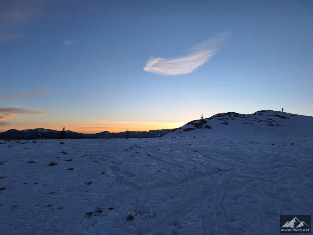 Heute Start am unteren Parkplatz am NiederalplDie Forststraße ist schön präpariertAusblickSabine kurz vor der WetterinalmAngekommen auf der WetterinalmBlick zur Bergstation des SesselliftesWanderselfie zwischendurch 😉Blick zurückDie WetterinalmRückblick am Weg nach obenAusblich zur hohen VeitschGipfelkreuz in SichtweiteBlick zur TonionBlick ins Mariazeller LandBlick zu Veitsch und WildkammGipfelkreuz jetzt wieder ohne FahnenschmuckGipfelselfie, eh klar 😉Sonnenuntergang am Weg nach unten