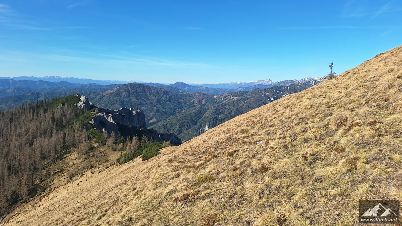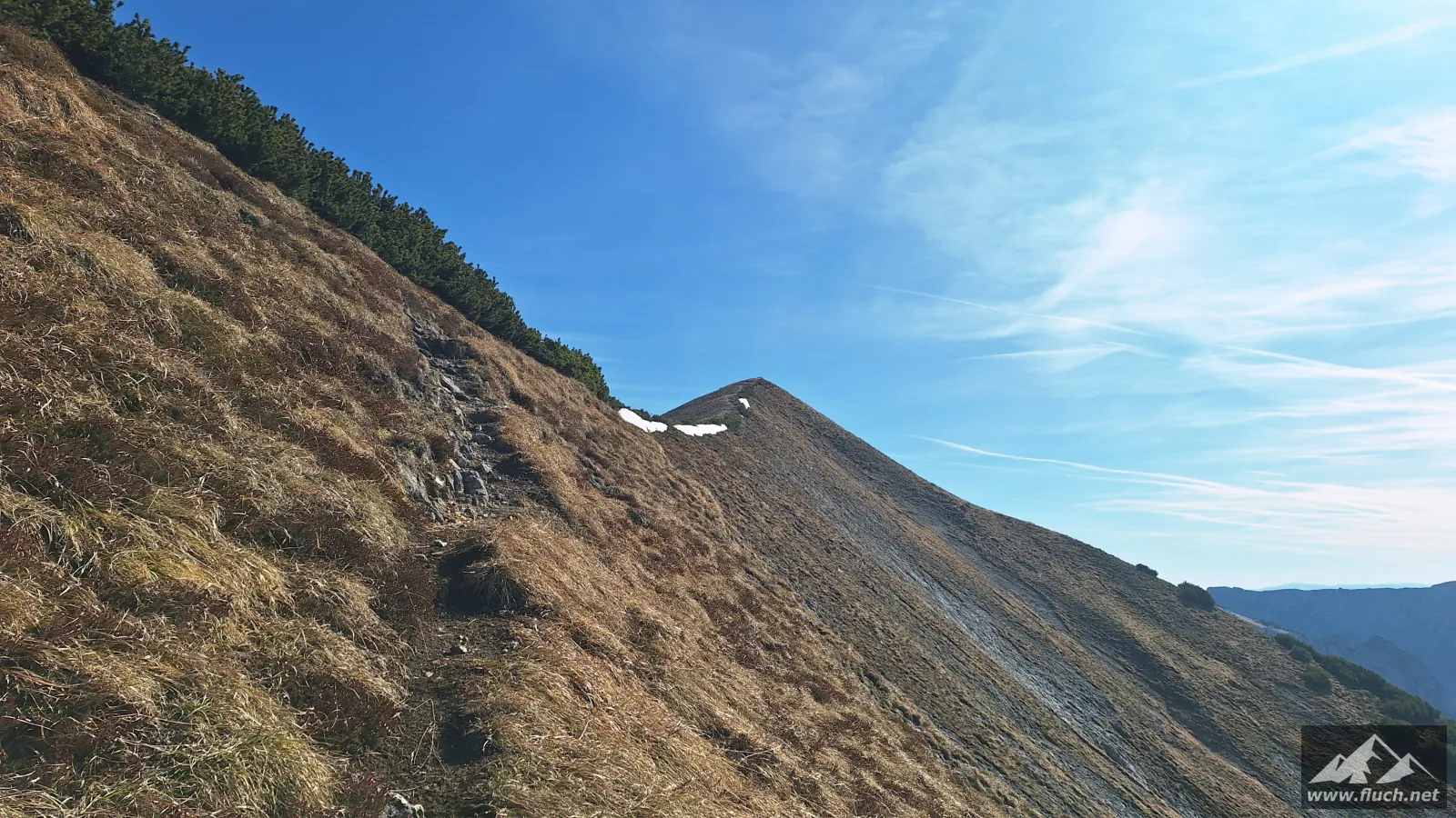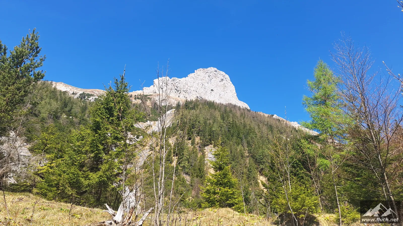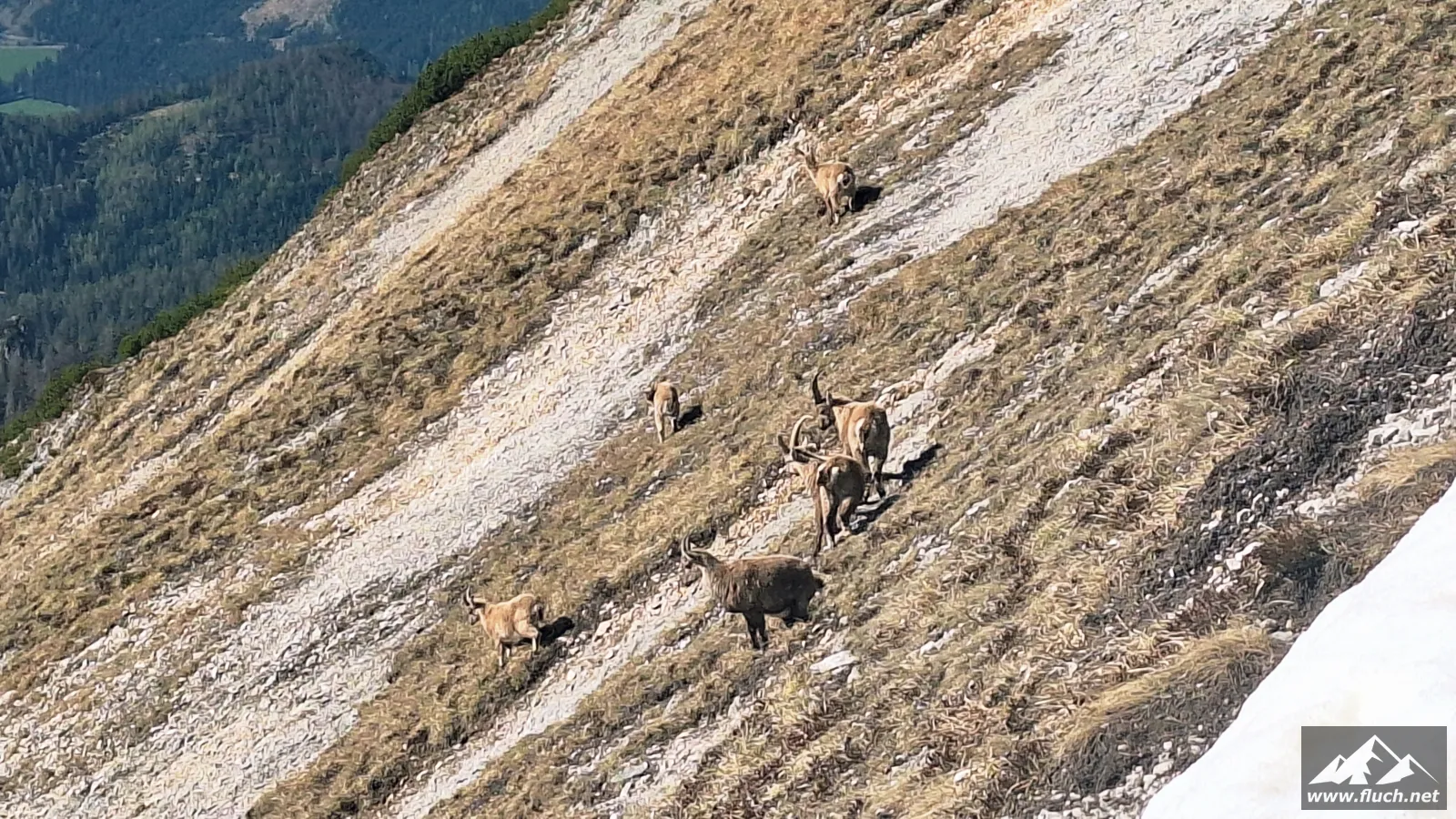 Nach der Gipfelrast entschied ich mich dann für den Abstieg zur Fölzalm (1.472m), ich war mir beim Aufstieg nicht sicher ob der steile Weg hinunter schon begehbar ist, aber nach einem Blick von oben stellte sich heraus das der gesamte Weg schneefrei war.