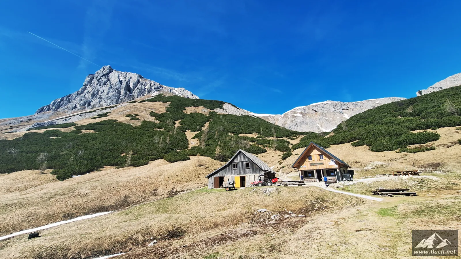 Bei der Grasserhütte wurde schon fleißig gearbeitet und so hatte ich das Glück schon eine kalte Erfrischung zu bekommen. Danach folgte der schon gut bekannte Abstieg über die Steinbockleiten und die Fölzklamm hinunter zum Ausgangspunkt meiner Wanderung.