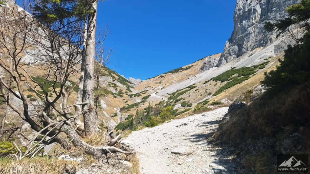 Wichtig ist hier die richte Seite zu wählen, rechts des Baches beginnt der Steig, auch wenn es links viel verlockender aussehen würde. Durch die Unwetter in den letzten Jahren ist der Weg im unteren Bereich sehr in Mitleidenschaft gezogen worden, eine Begehung ist aber mit einigen Hindernissen möglich.