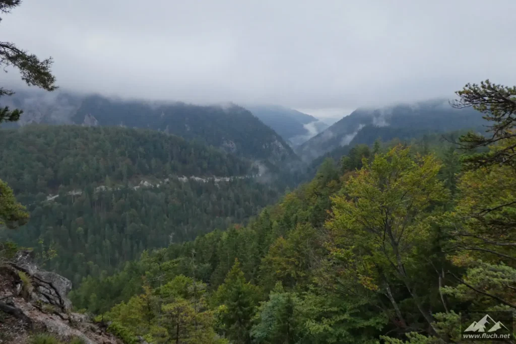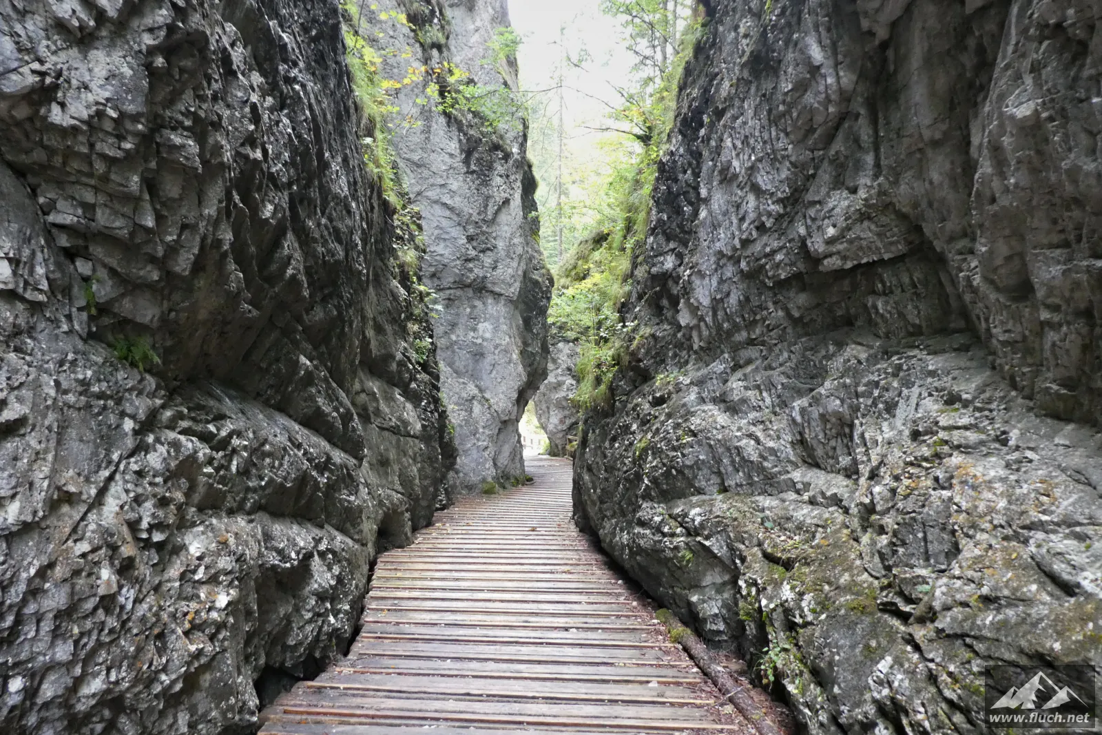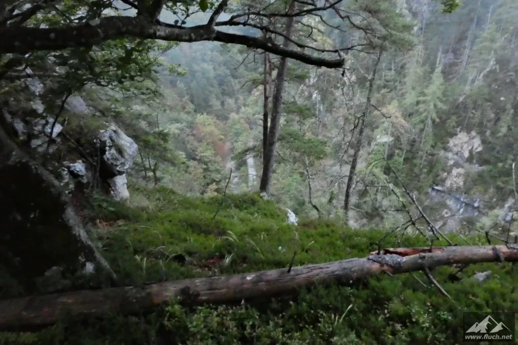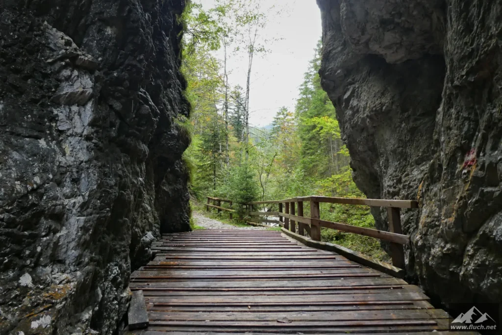 Zwischendurch gibt es auch imposante Aus- und Tiefblicke in die Klamm hinunter, das war mir heute leider nicht vergönnt. Mehrere Aussichtspunkte entlang des Aufstiegs bieten gute Möglichkeiten dafür und sind oft nur ein paar Meter neben dem Weg.