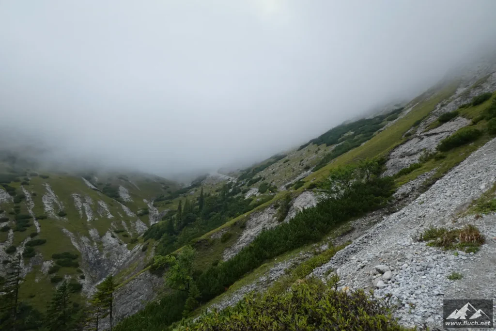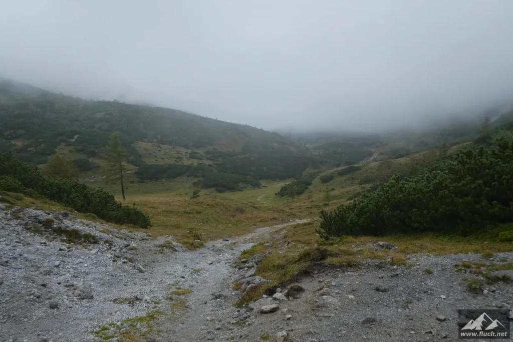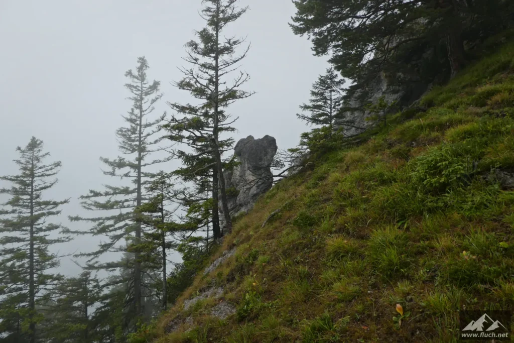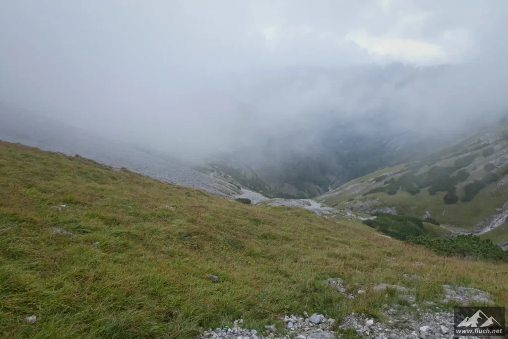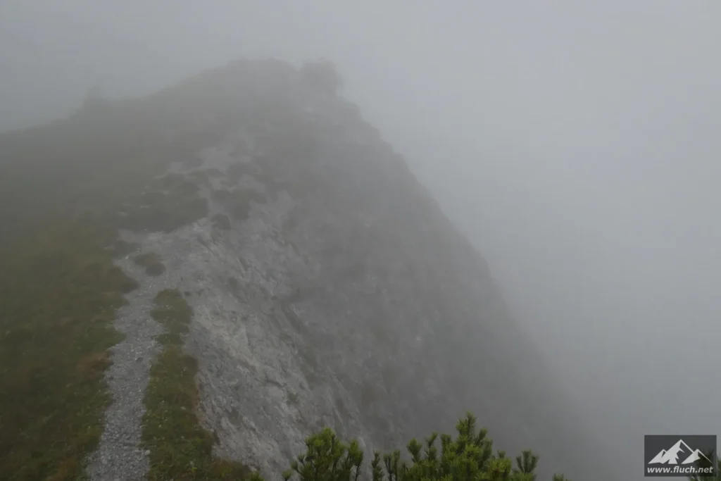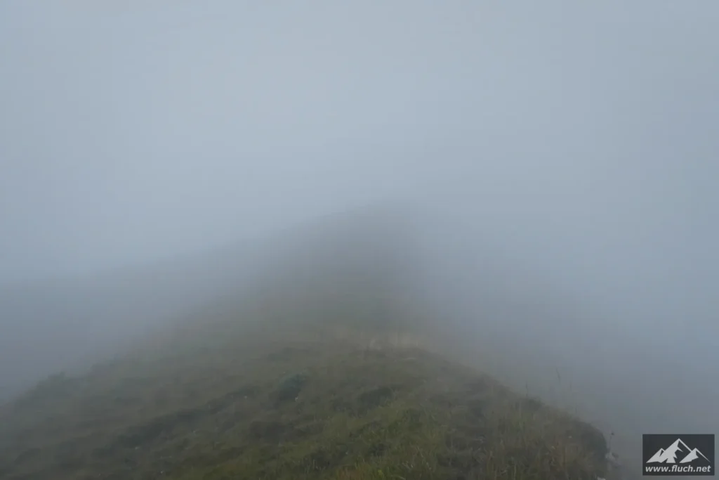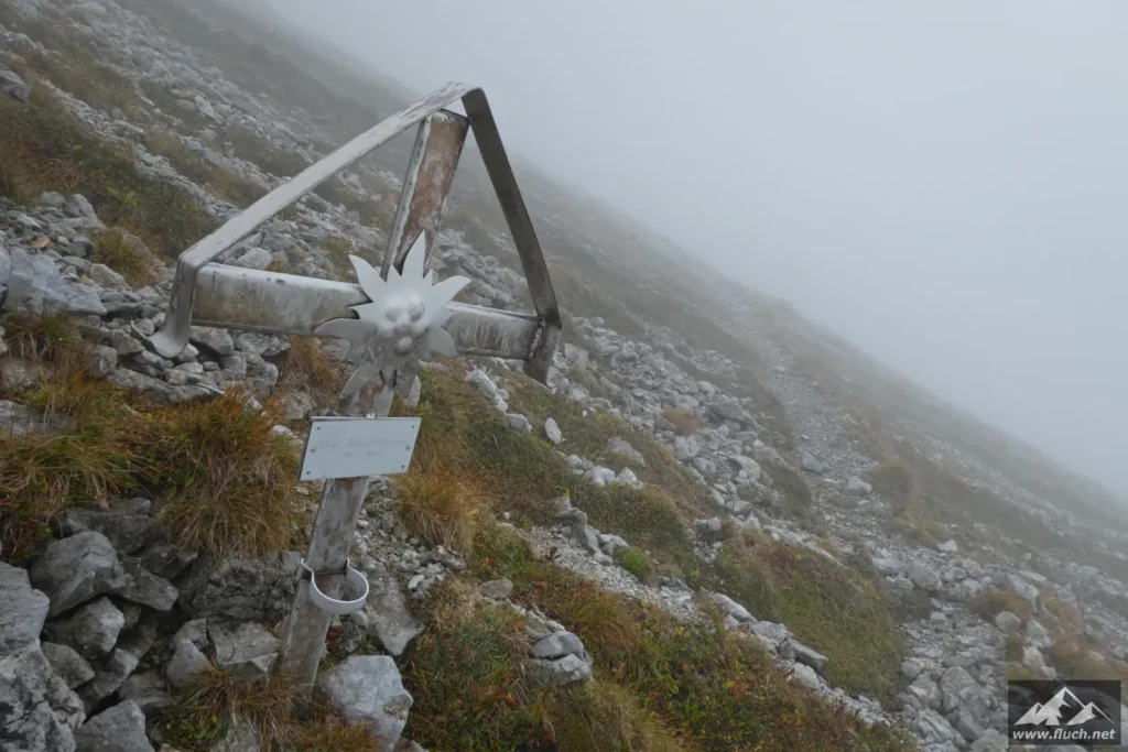 Anschließend ging es noch hinüber zum Fölzkogel (2.022m), wenigstens ein 2.000er musste sein an diesem Tag. Der Weg hinüber ist auch bei Nebel gut zu finden, an schönen Tagen gibt es hier eine tolle Aussicht zur Hochschwabsüdwand, das blieb mir heute aber auch verwehrt.