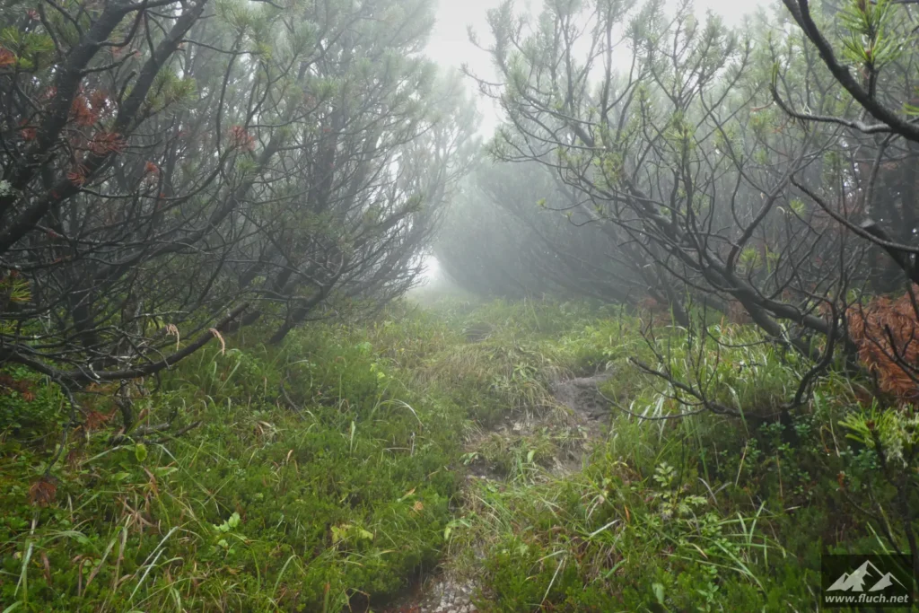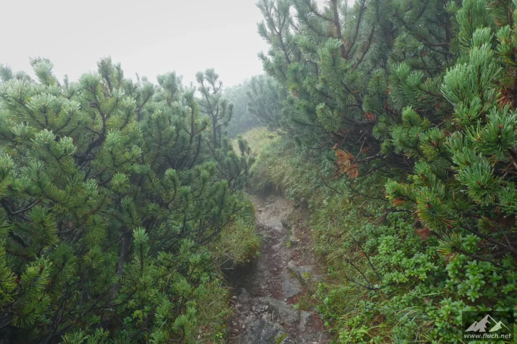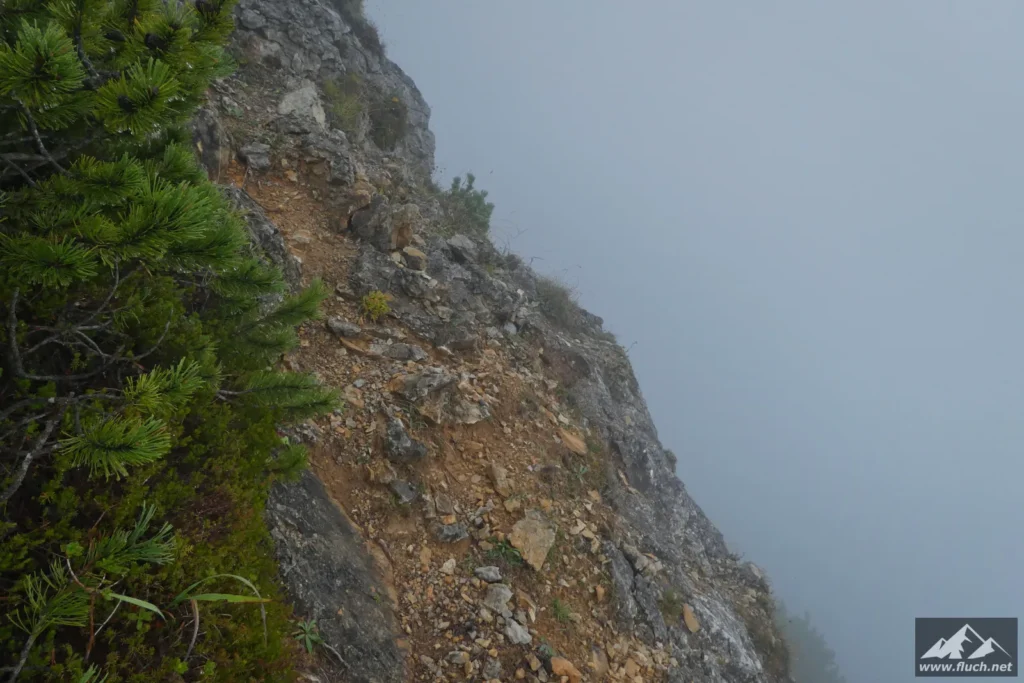 Danach folgte noch eine steilere Passage hinauf bis zum Waschenriegel, hier ist der Weg oft sehr ausgesetzt und abdrängend (definitiv nichts für Personen mit Höhenangst), man kann sich aber auf dem teilweise sehr schmalen Steig am Grat an den Latschen anhalten. Wichtig ist auch hier nicht den Wildfährten zu folgen, denn sonst landet man schnell in unwegsamen und gefährlichem Gelände!