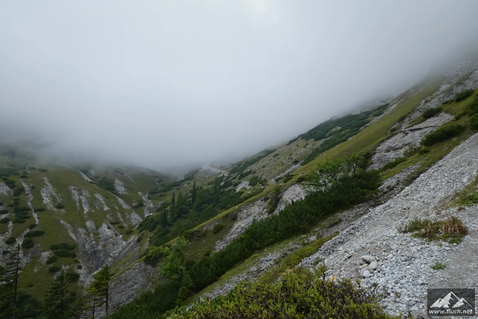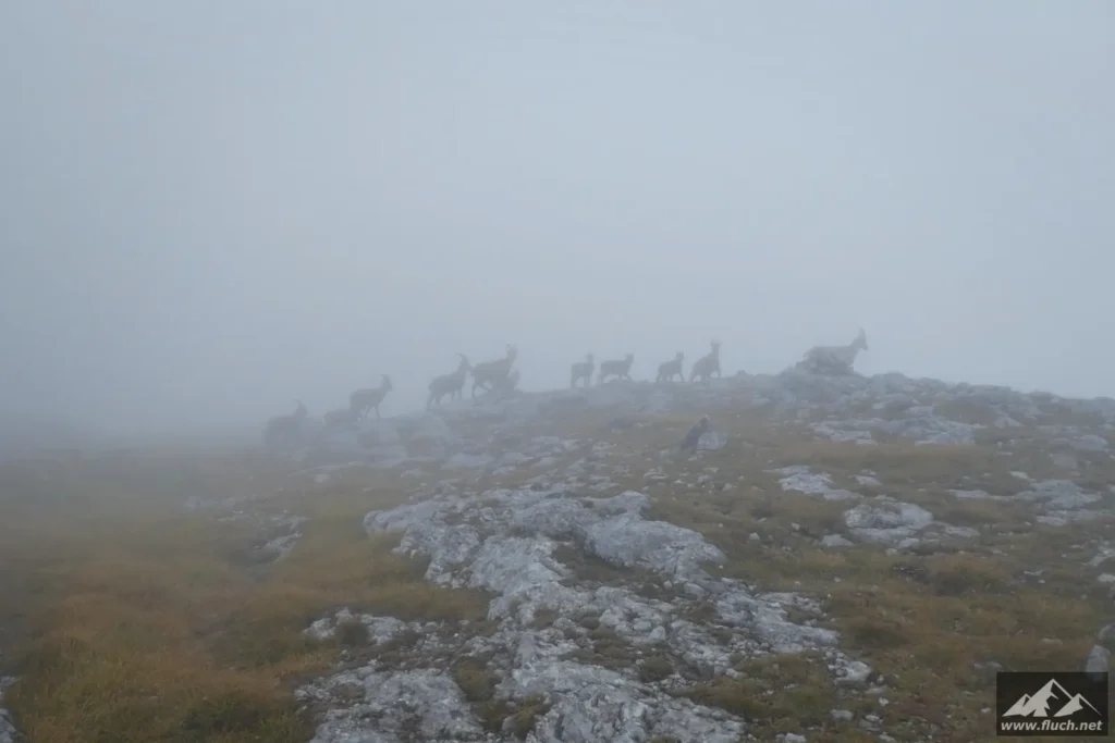 Am Weg durch den dichten Nebel haben mich einige Gämsen in teilweise drei Meter Entfernung nicht einmal wirklich wahr genommen, eine größere Gruppe Steinböcke stand dann auch noch etwas abseits des Weges und war total entspannt als ich vorbeimarschiert bin.