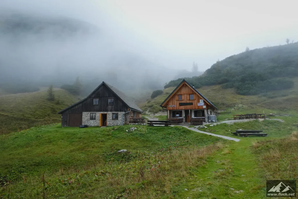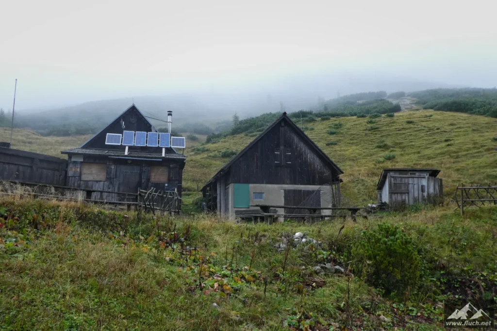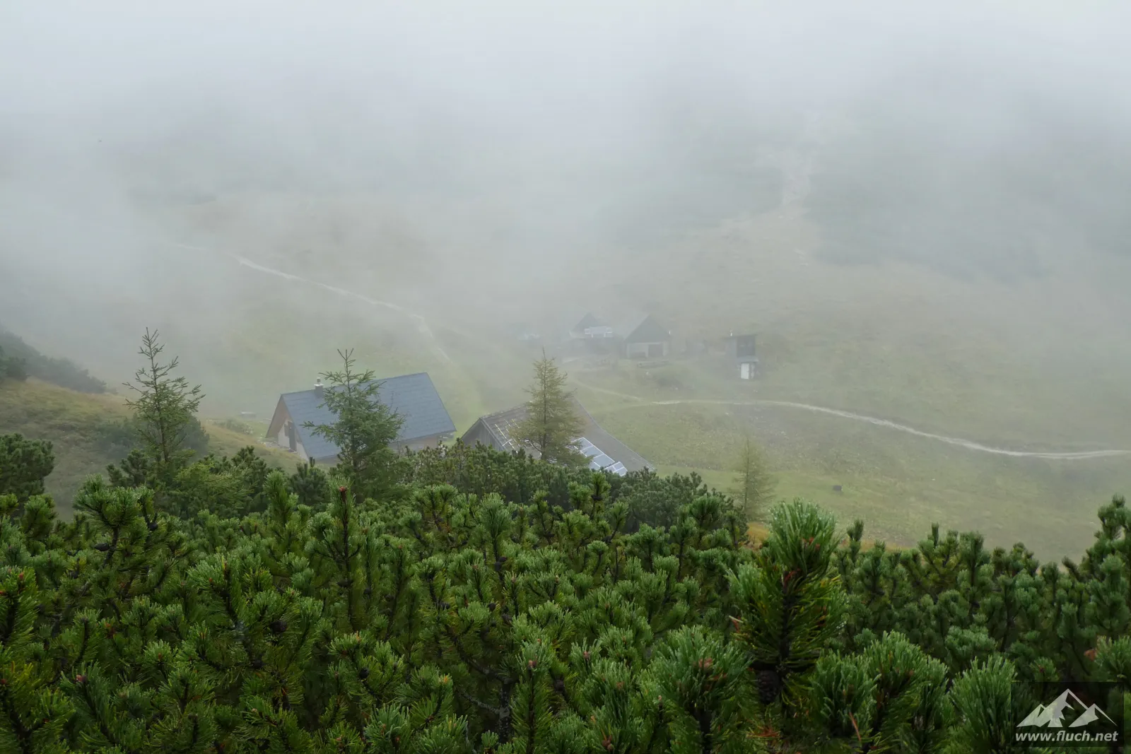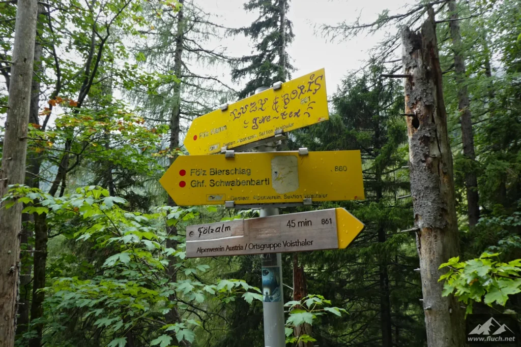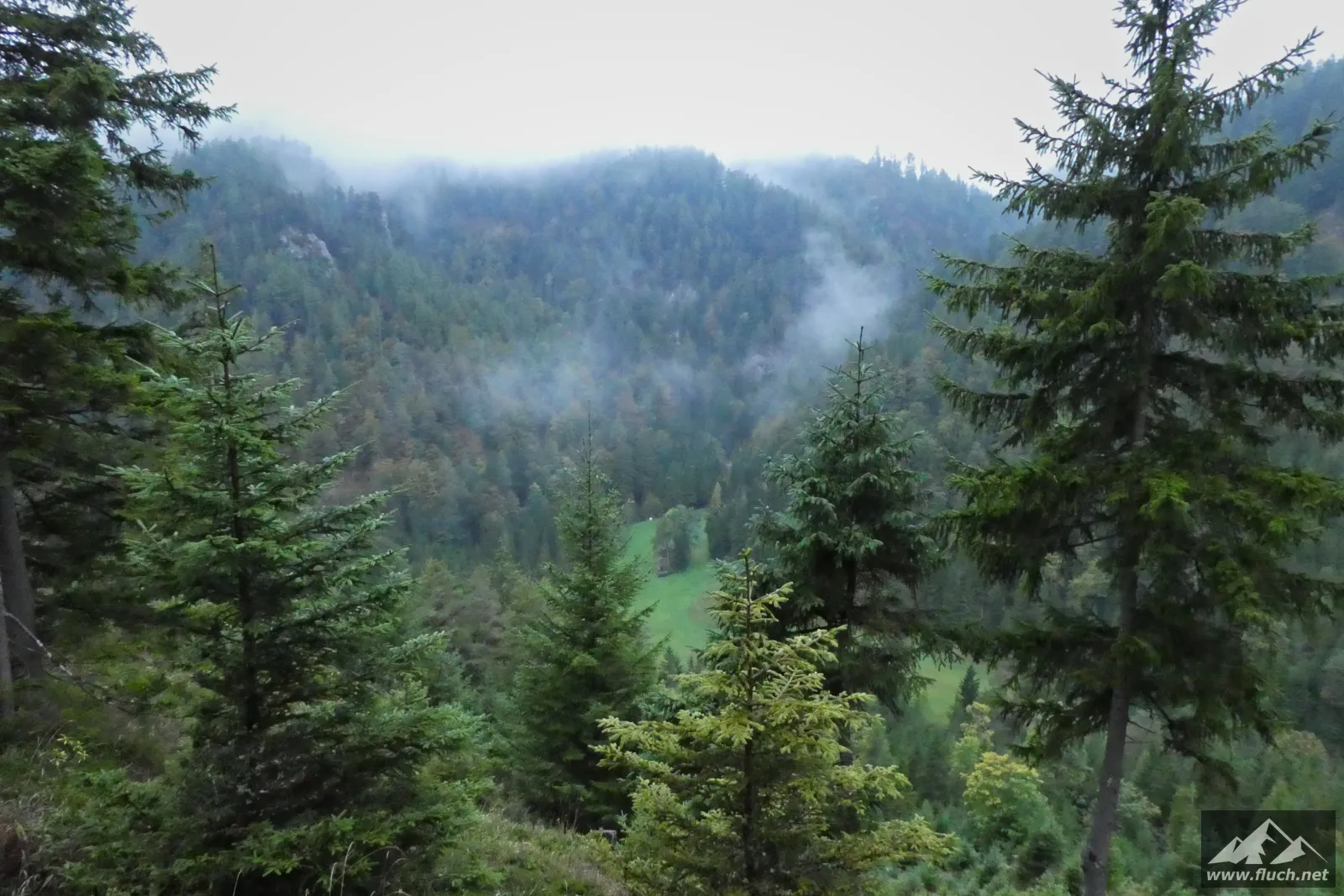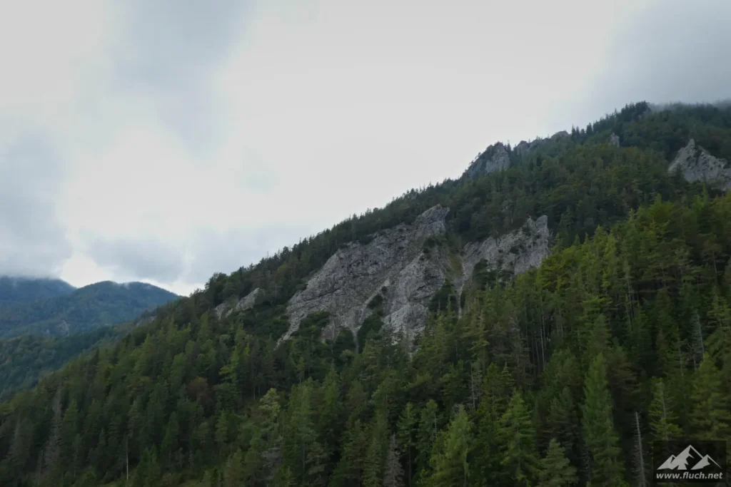 Nach dem kurzen Aufenthalt beim Gipfel machte ich mich bald darauf auf den Weg zurück zum Fölzstein und von dort an den steilen Abstieg hinunter zur Fölzalm (1.490m).
