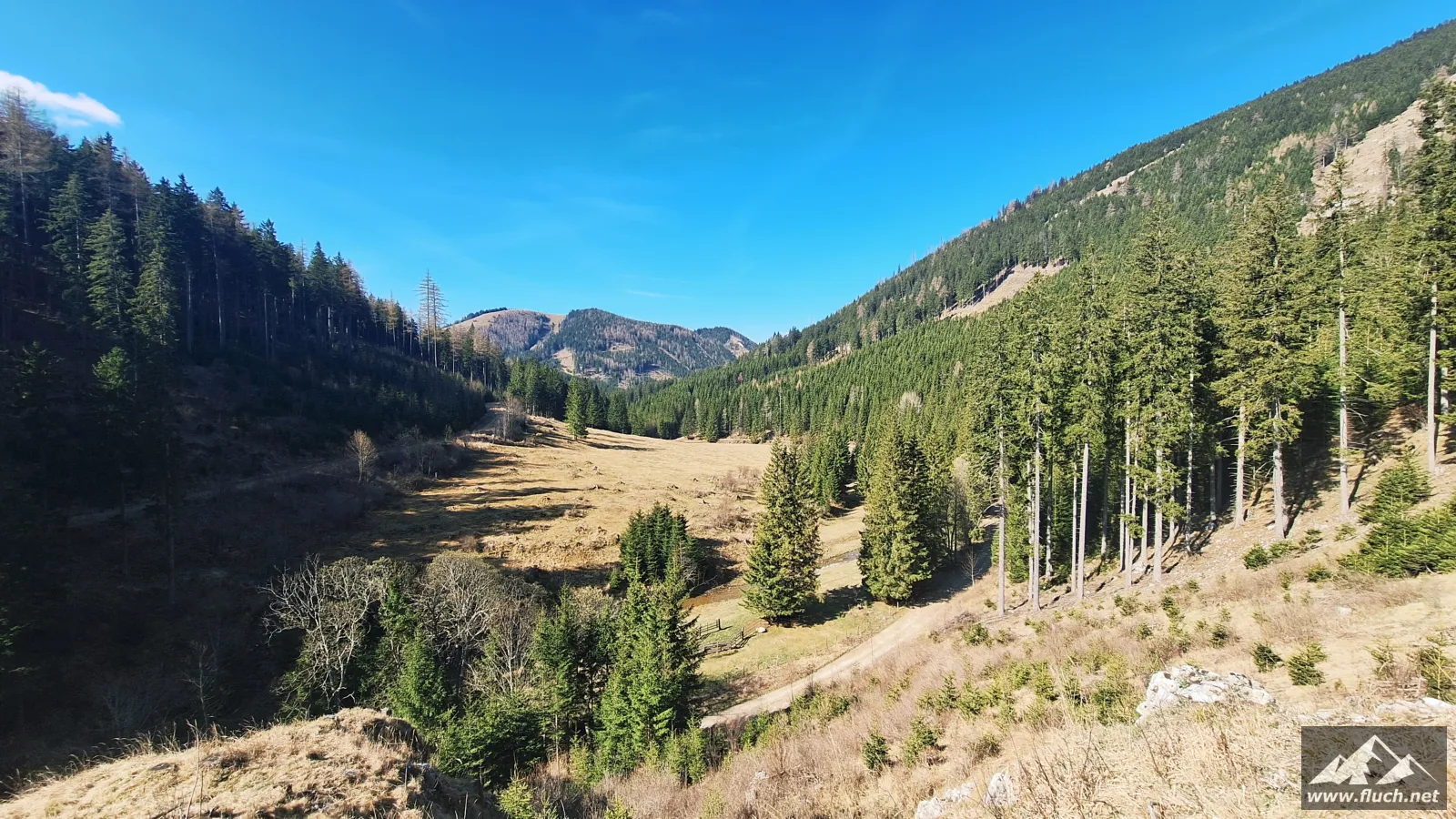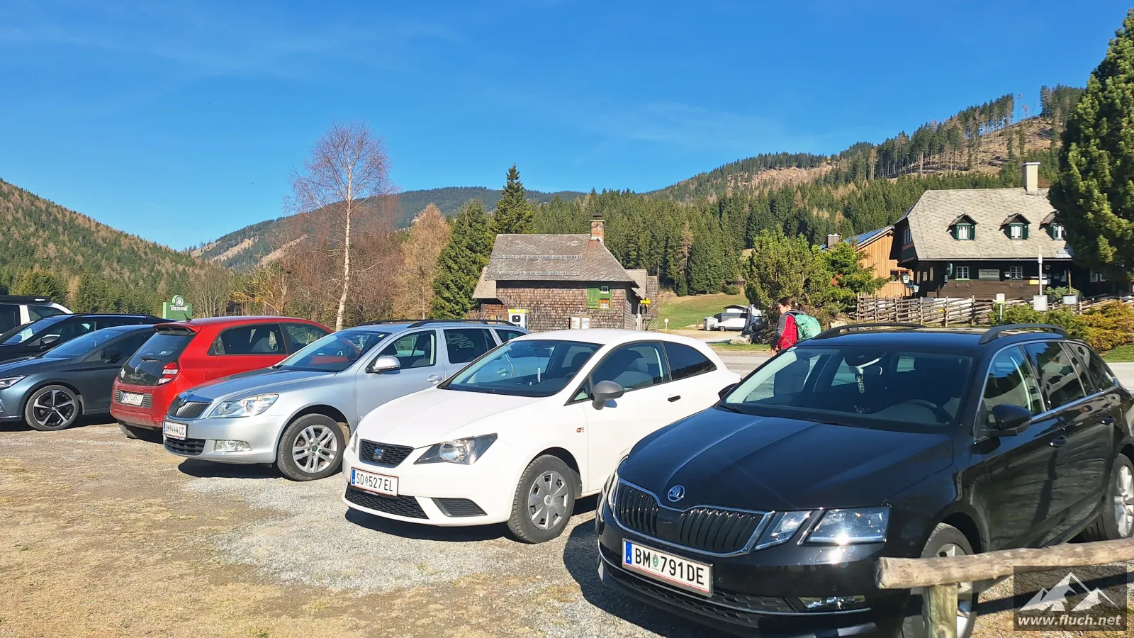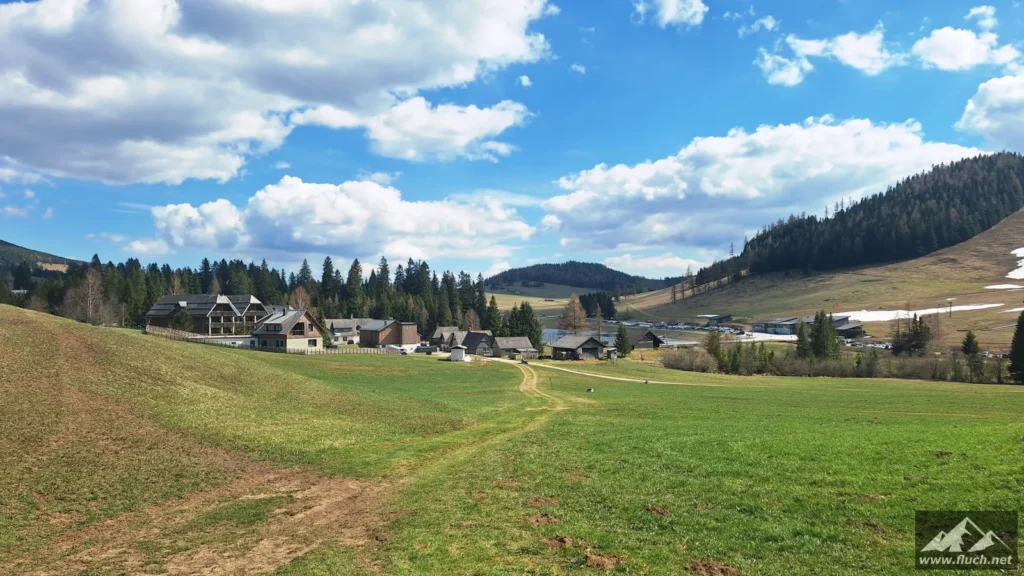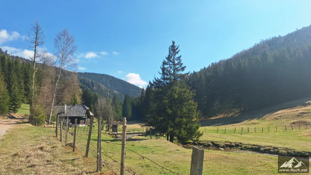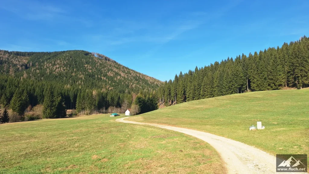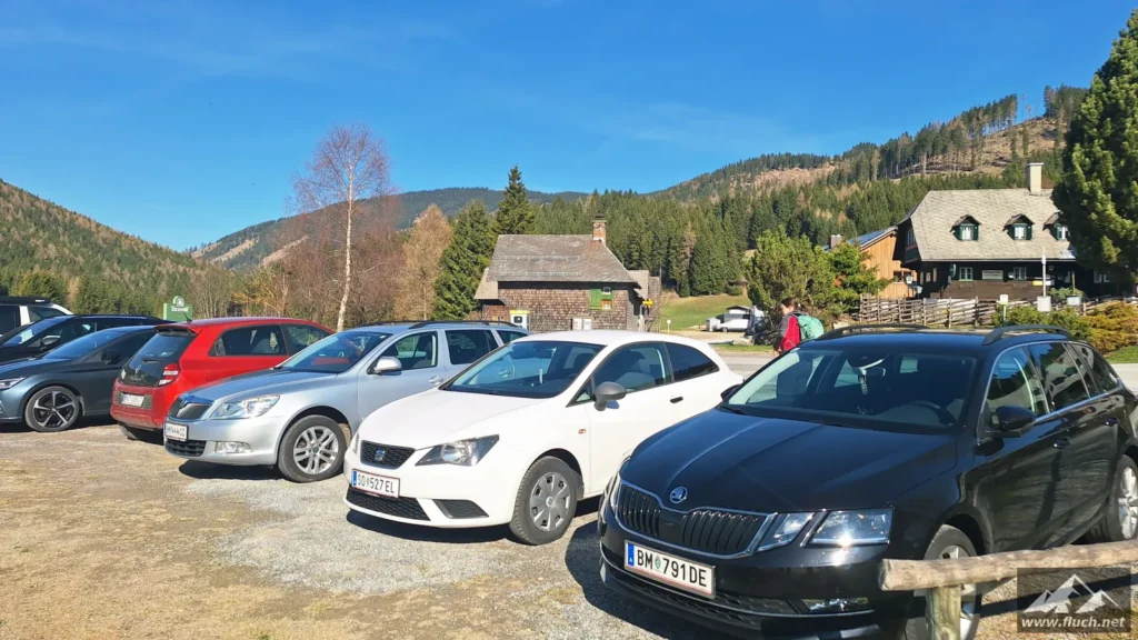 Los ging es beim Parkplatz des Hotel Teichalm (ca. 1.190m), dort beginnt die Forststraße auf der wir zuerst relativ unspektakulär zum steirischen Jockl gewandert sind.
