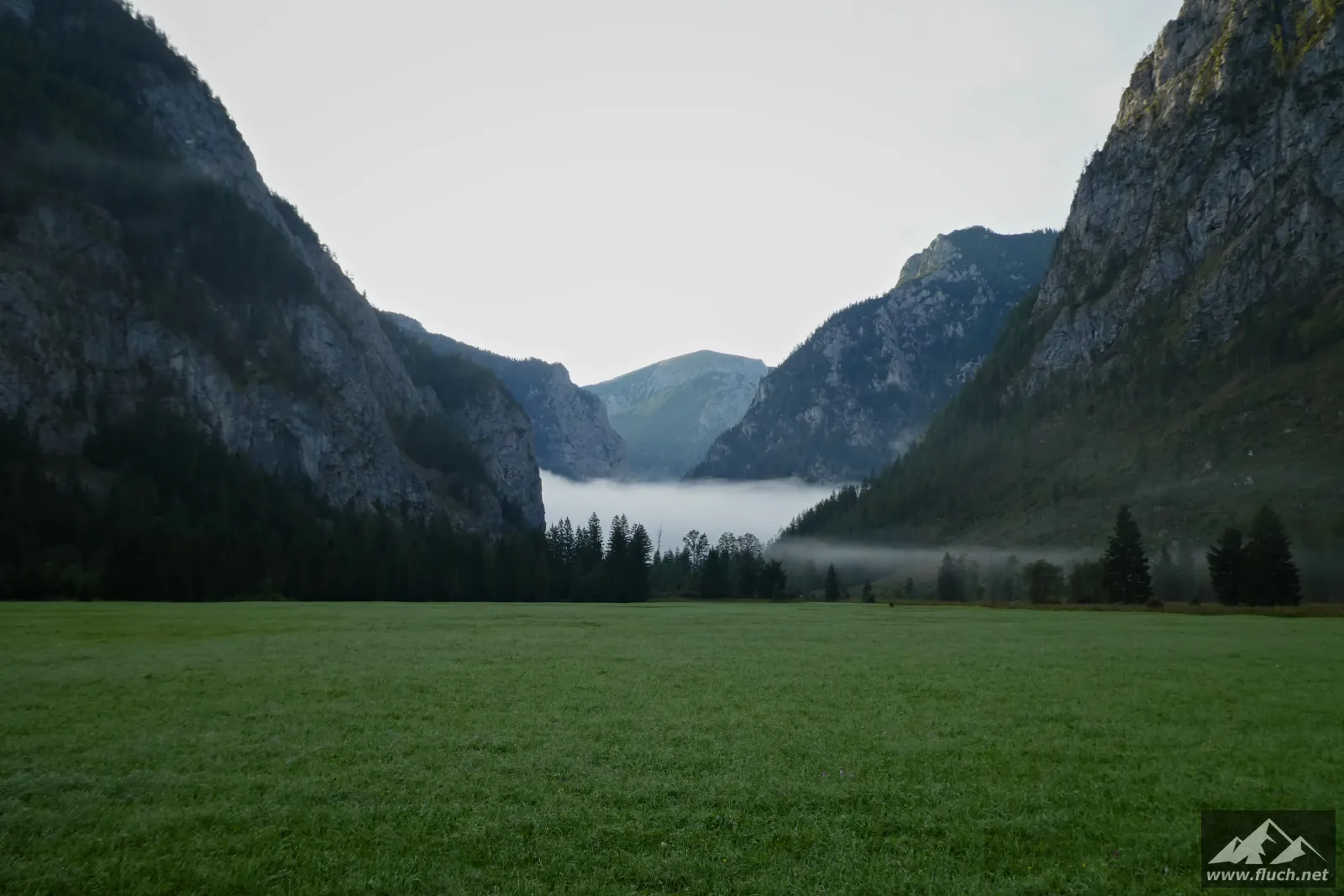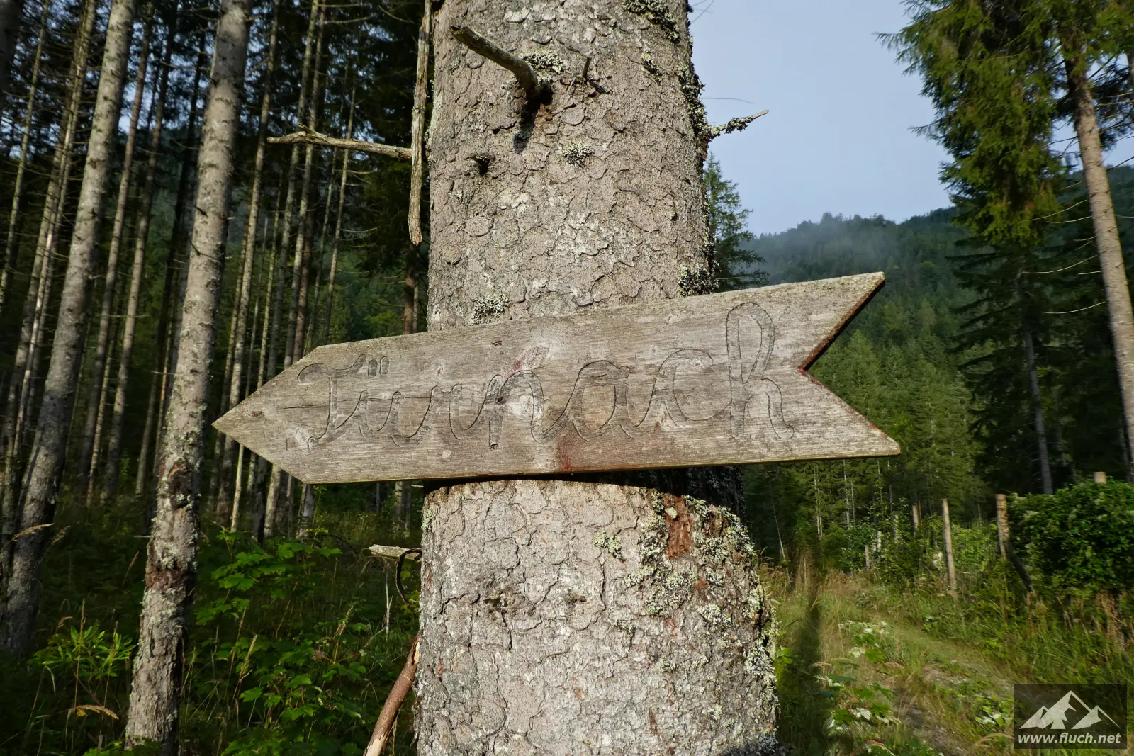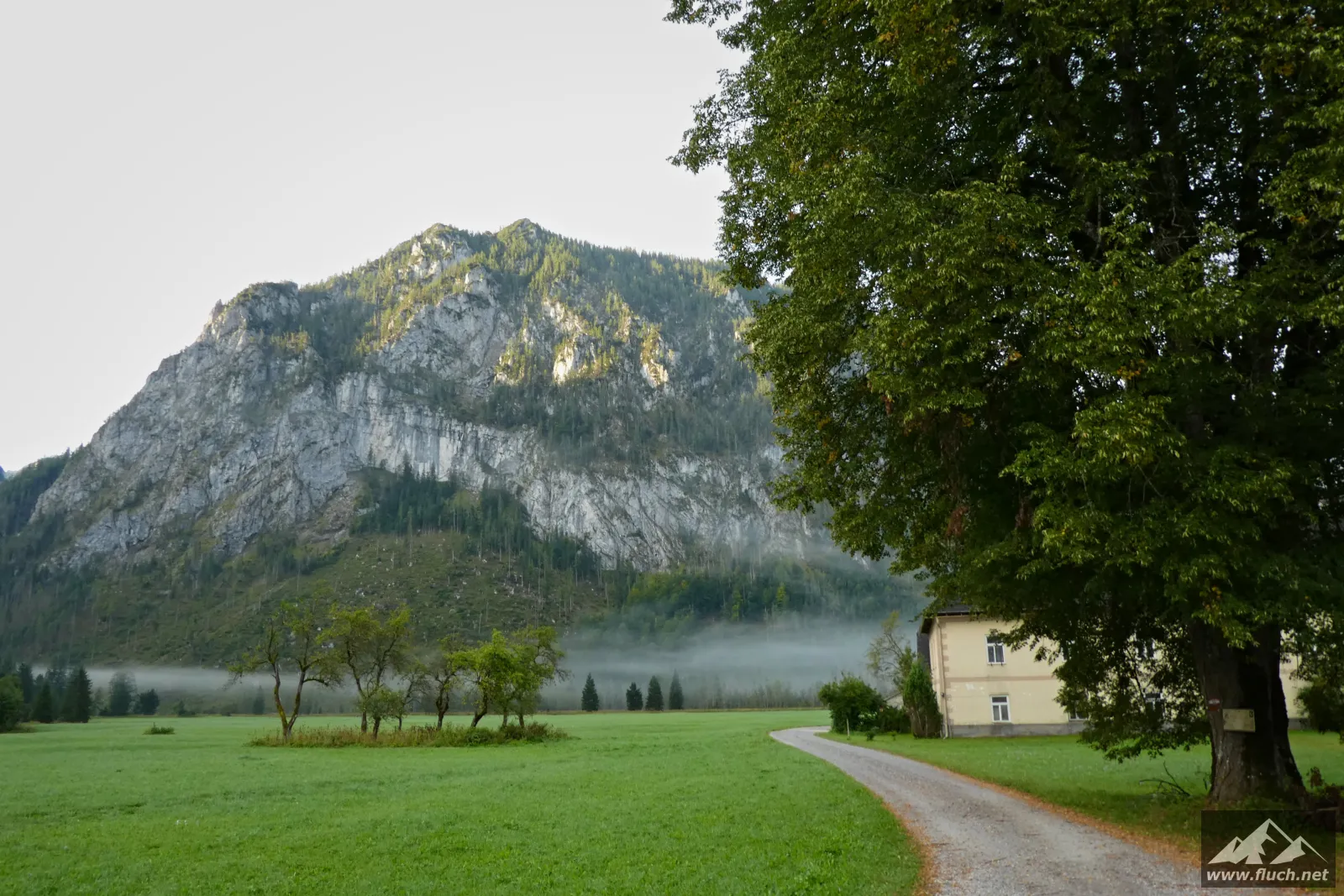 Los ging es um kurz nach 7:00 Uhr bei der großen Linde in Rotmoos (690m), der erste Wegabschnitt verläuft auf der Forststraße flach dahin bis zu einem Wildgatter. Hier geht es links am Tor vorbei weiter, nicht geradeaus.