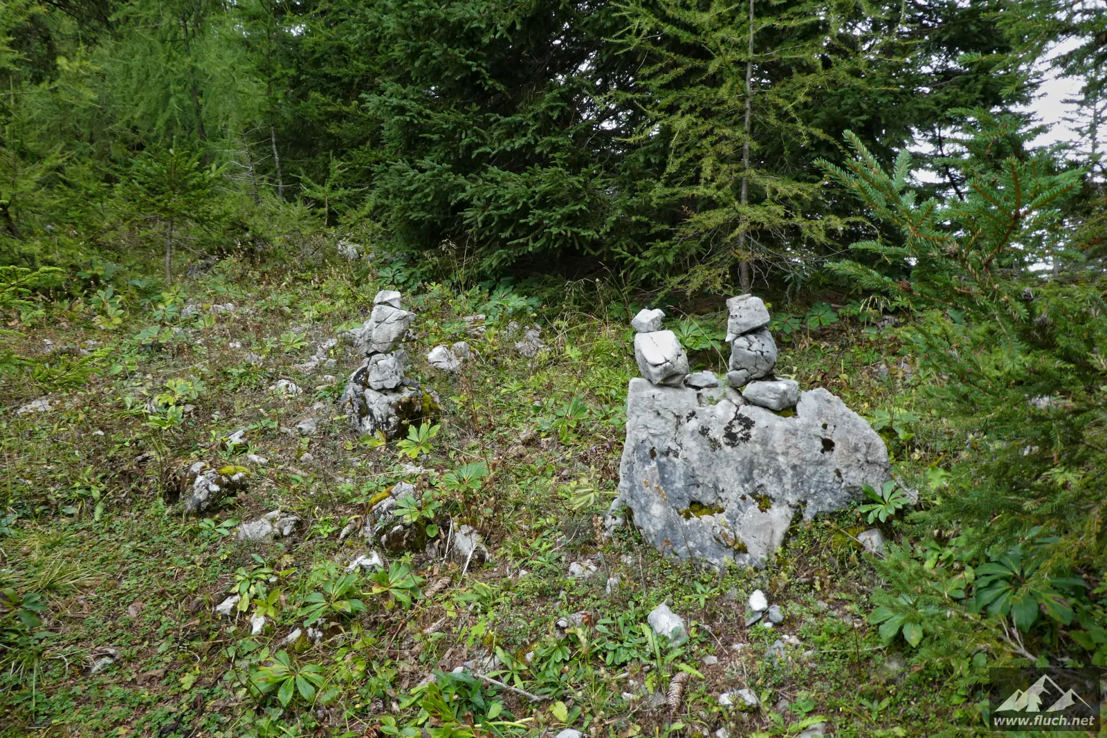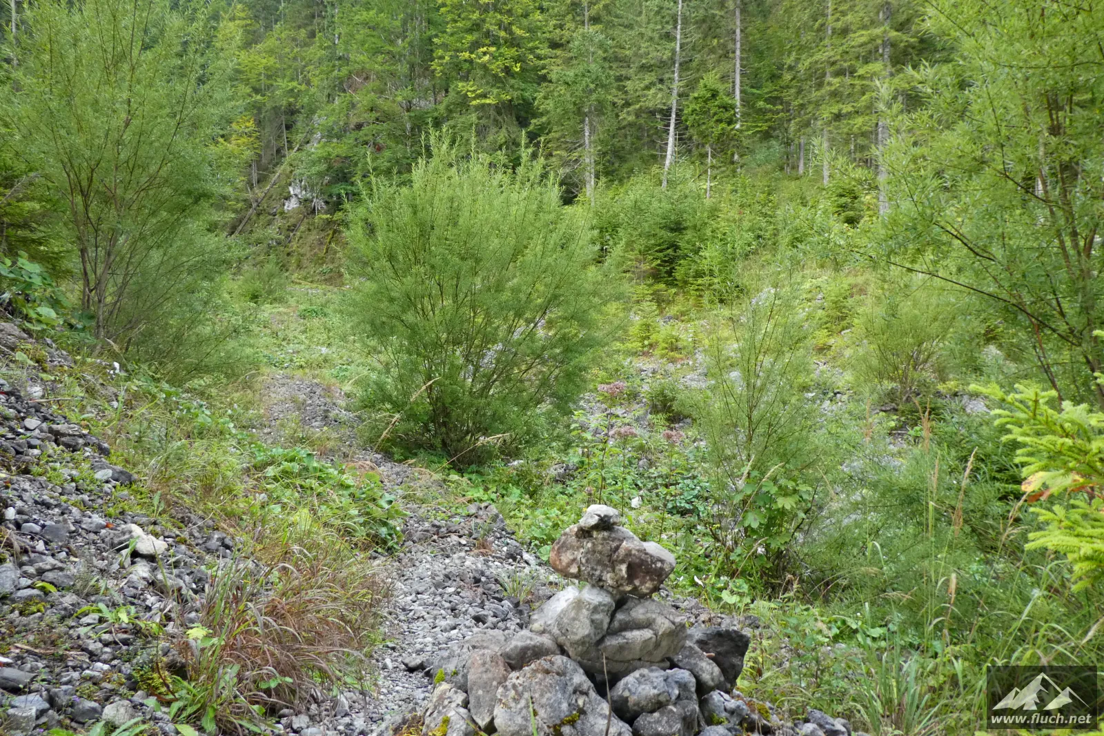 Nach der Überquerung des Bachbetts beginnt dann die Steinmanderlsuche, das ist die Hauptbeschäftigung für die nächsten Stunden, denn Markierungen sucht man hier vergeblich.