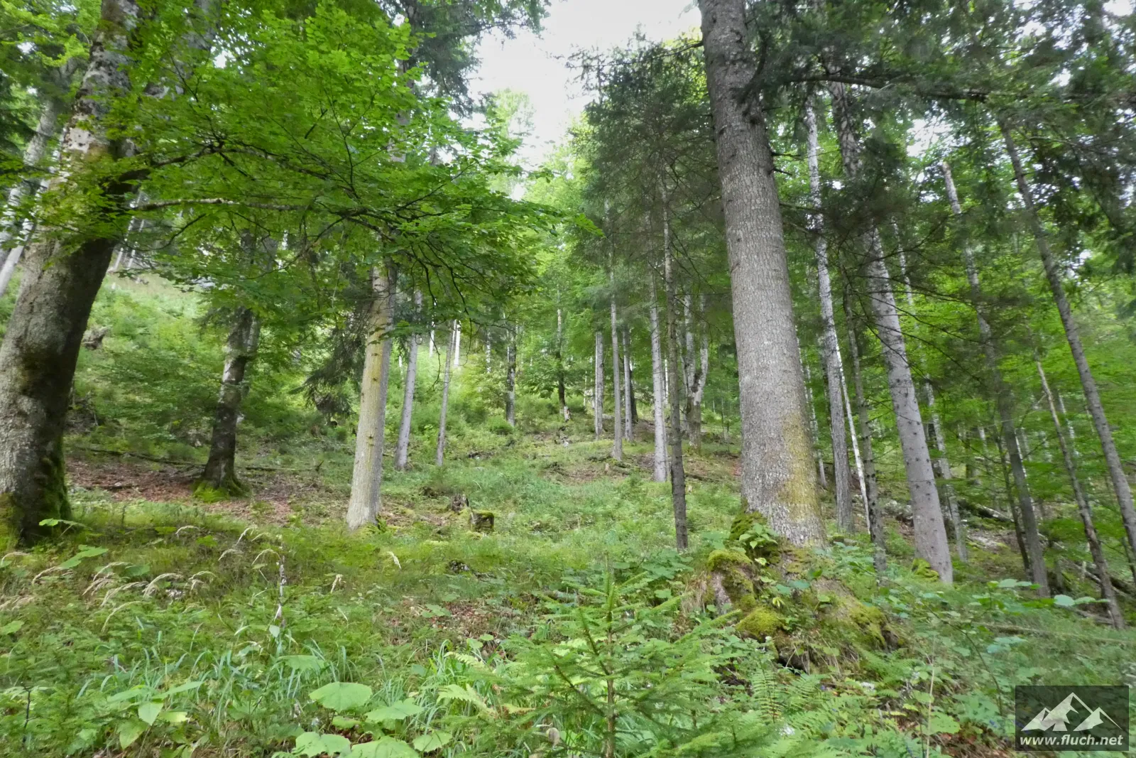 Als Abstiegsweg wählte ich die Variante über die Farnerwiese., von der unteren Mitterhalt lässt sich diese über einen Abstieg unmarkiert durch den lichten Wald erreichen.