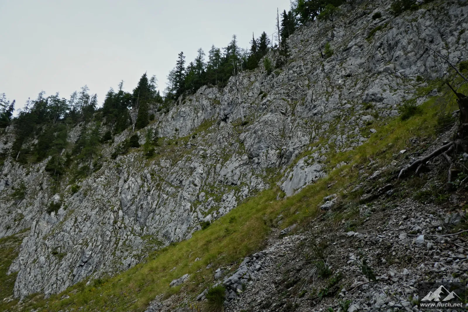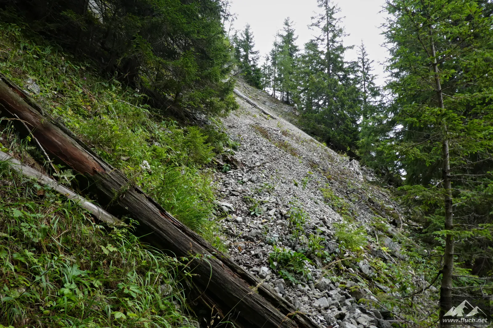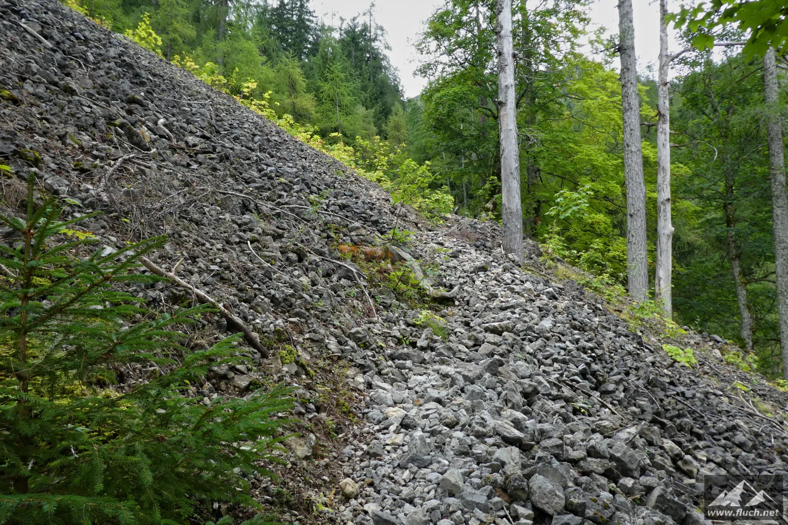 Der weitere Weg geht dann kurz vor dem See weiter, über mehrere Schotterfelder die gequert werden gewinnt man dann rasch an Höhe.