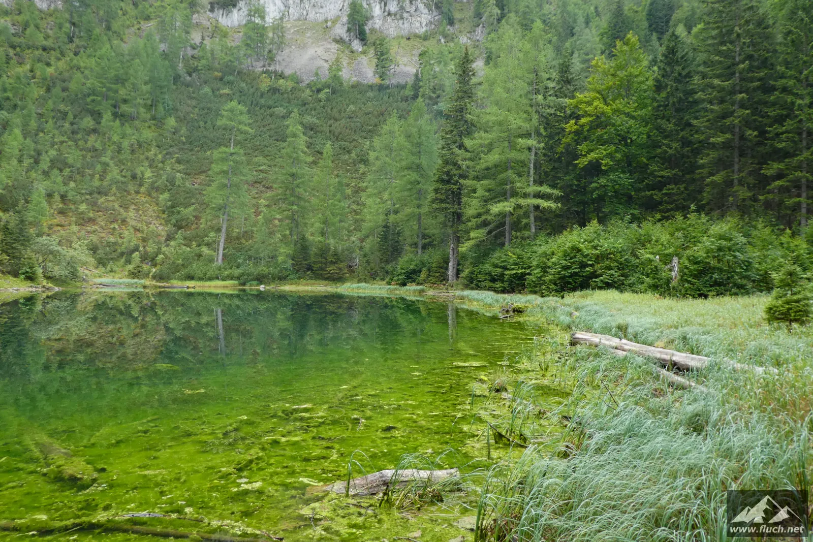 Auf einem schön angelegten Steig geht es danach mehrere Male die Forststraße überquerend hinauf zum idyllisch gelegenen Türnsee (ca. 1.230m). Es ist wirklich mystisch hier, ein toller Platz um eine kleine Pause einzulegen.