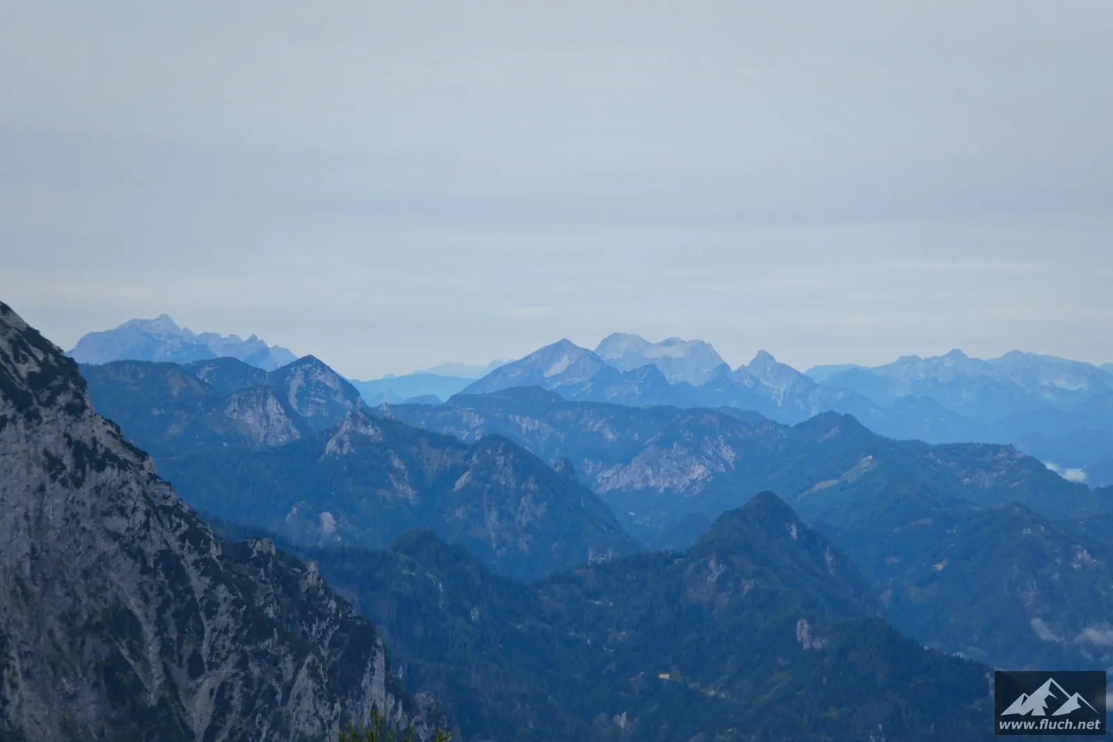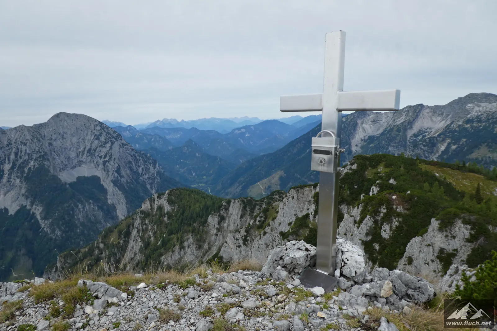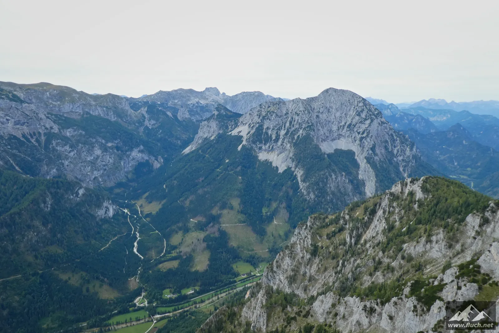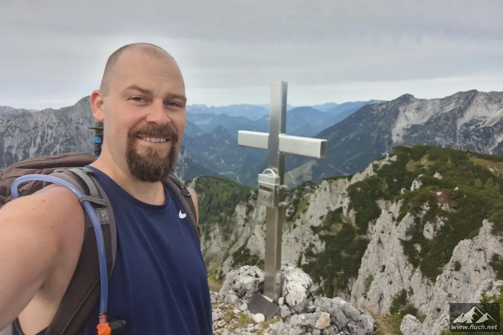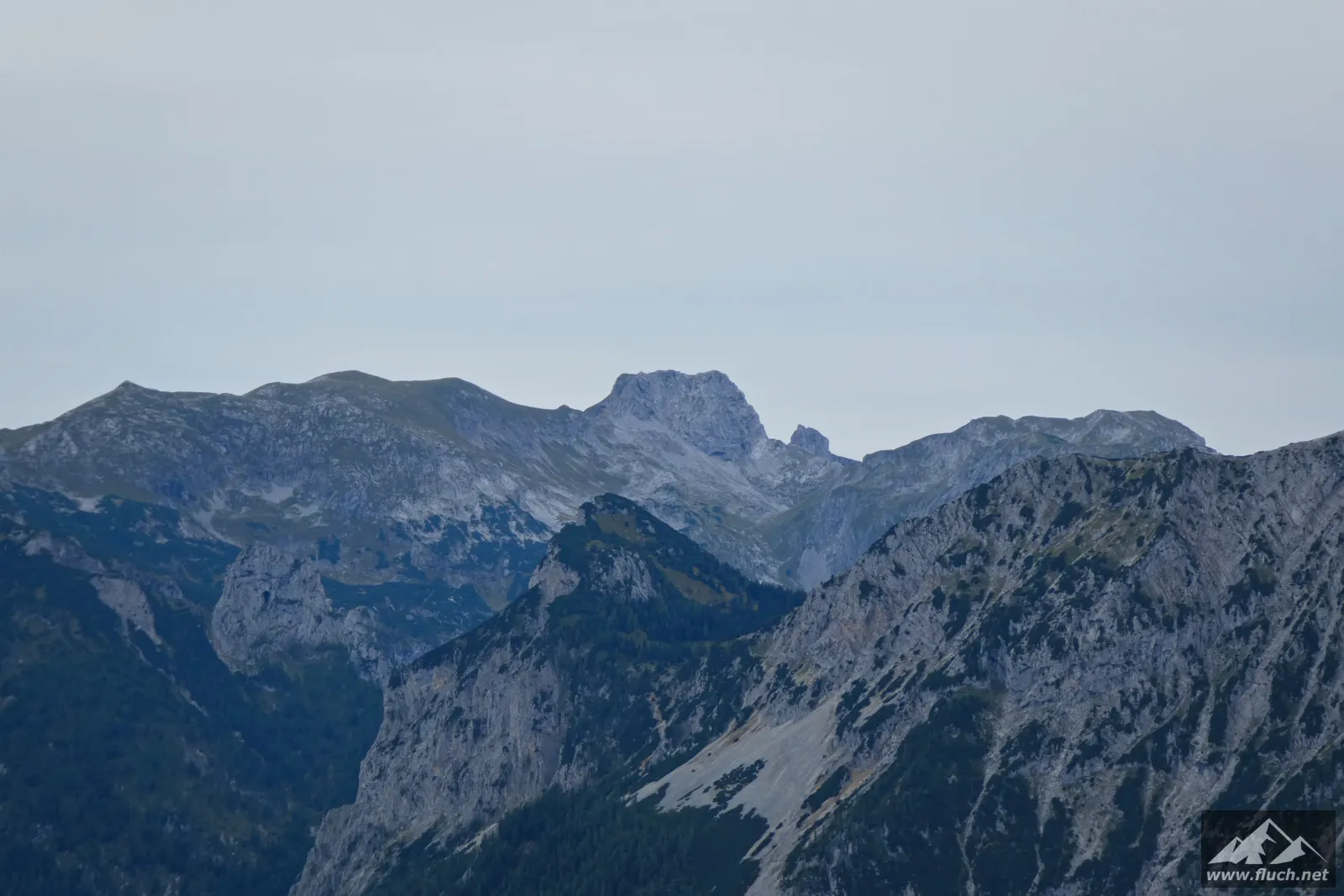 Am Gipfel des Hochtürnach (1.770m) angekommen bot sich dann eine schöne Rundumsicht, vor allem zu den bekannten Gipfeln und Felswänden des gegenüberliegenden Hochschwabs. Auch die Tiefblicke in das Salzatal sind sehr spektakulär.