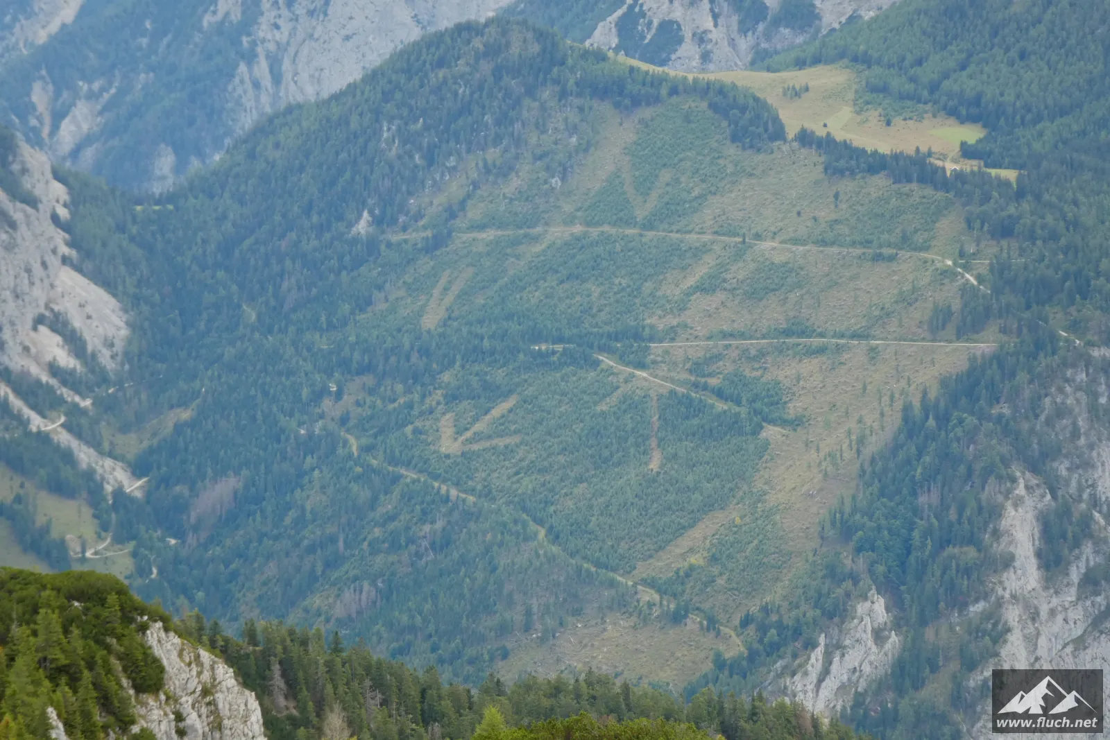 Der letzte Abstieg erfolgt dann sehr unspektakulär über eine Forststraße hinunter nach Rotmoos, die letzten Meter kürzt man noch einmal über einen steilen Steig ab der jedoch auch eher schlecht zu begehen ist.