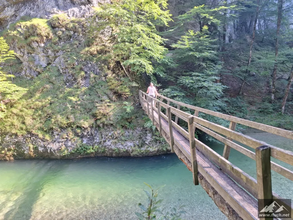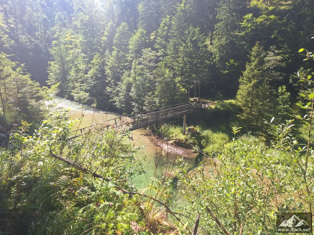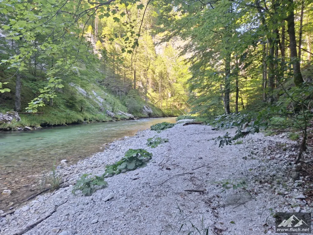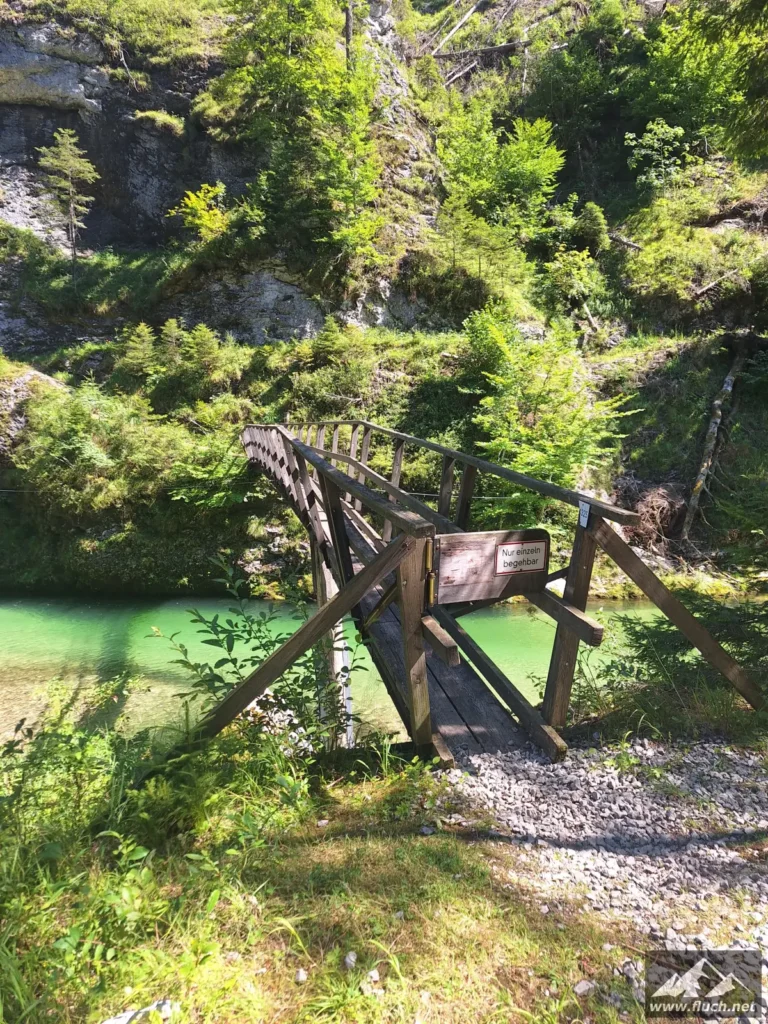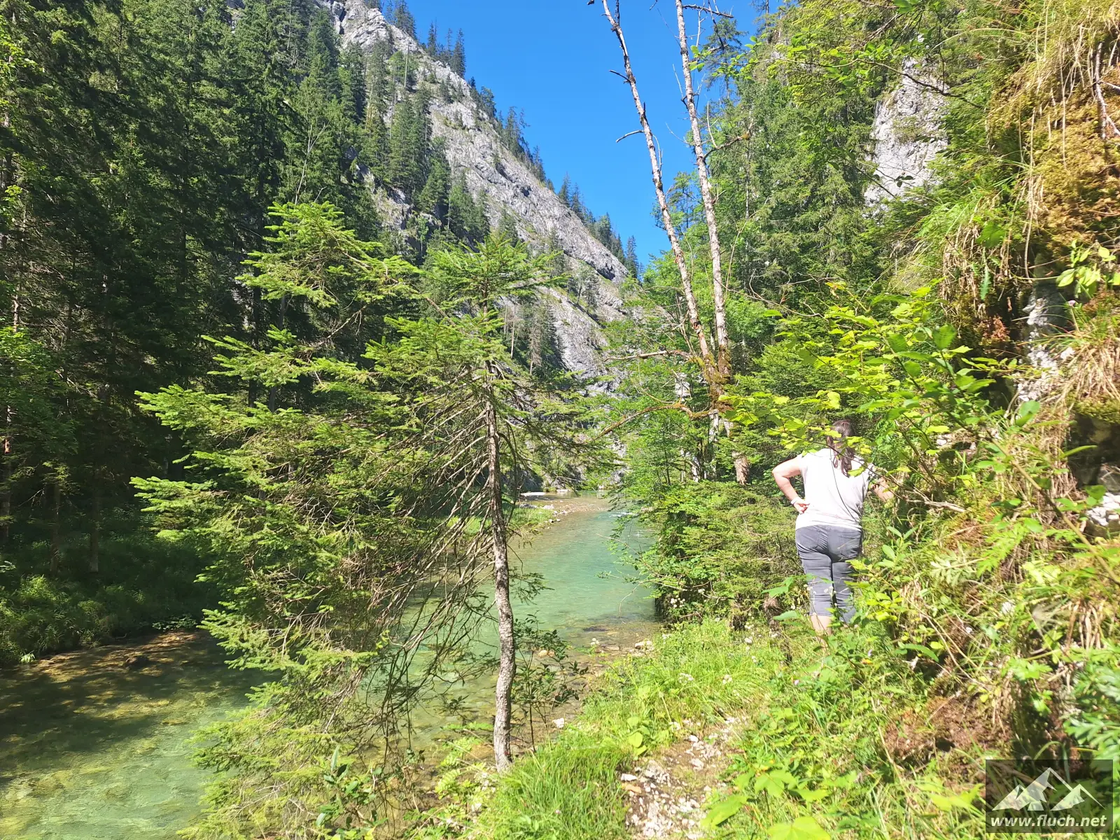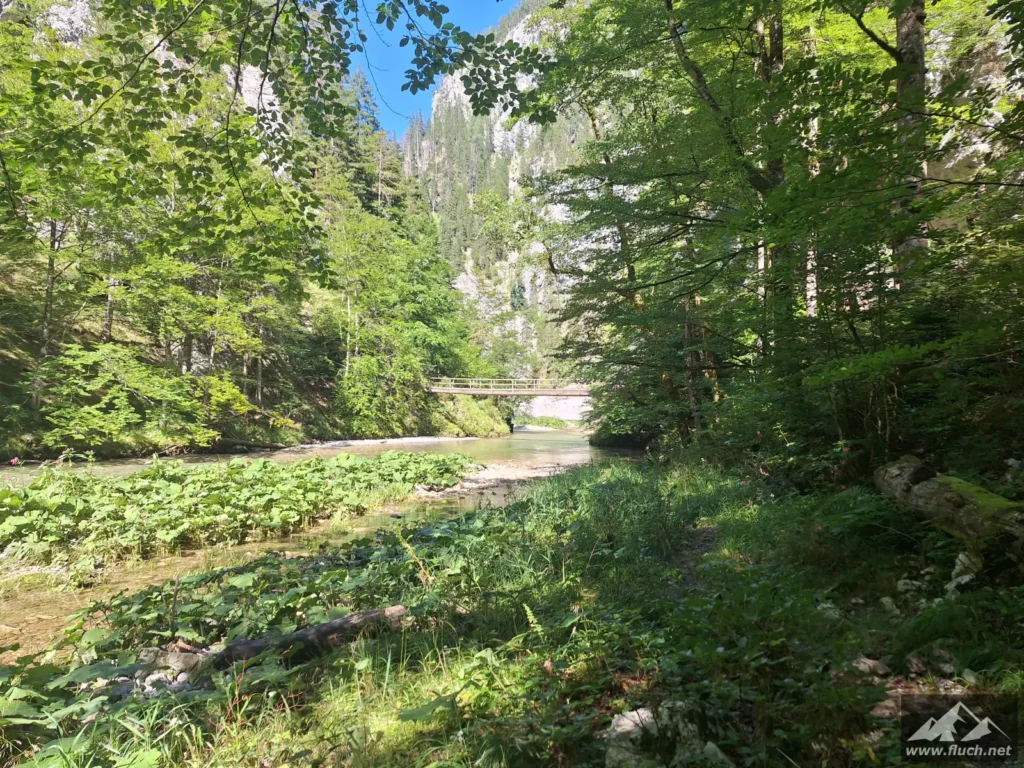Direkt an der Salza entlang geht es unschwierig hinein bis zur ersten Brücke, dort befindet sich auch eine Sitzgelegenheit für eine kleine Pause.