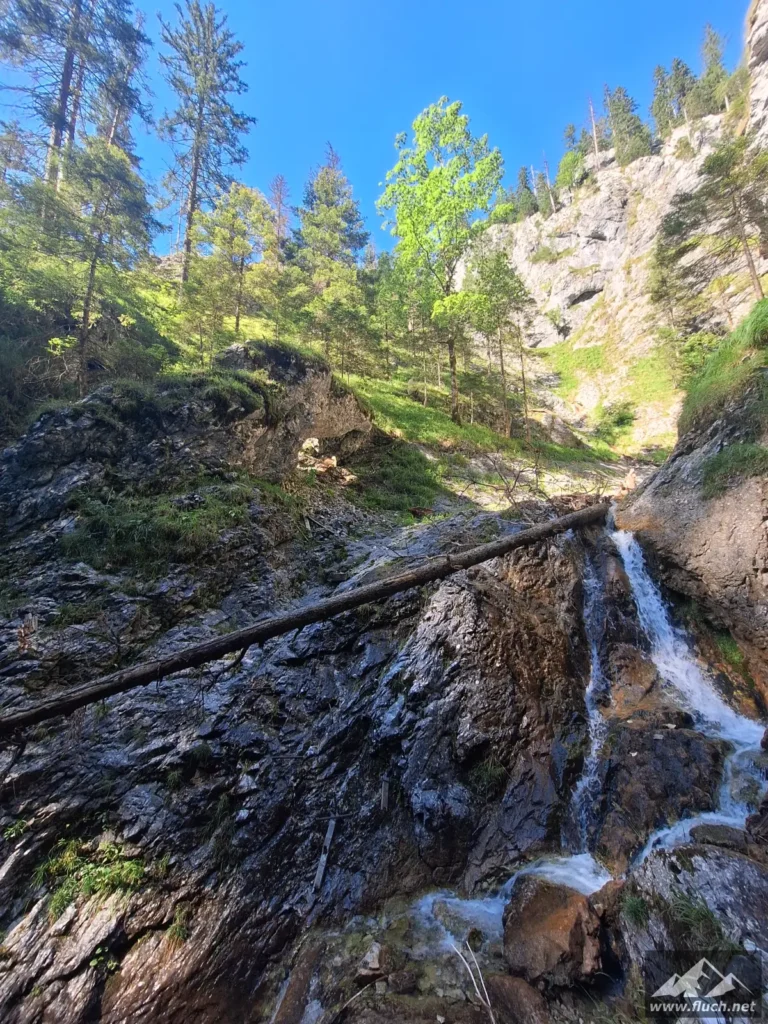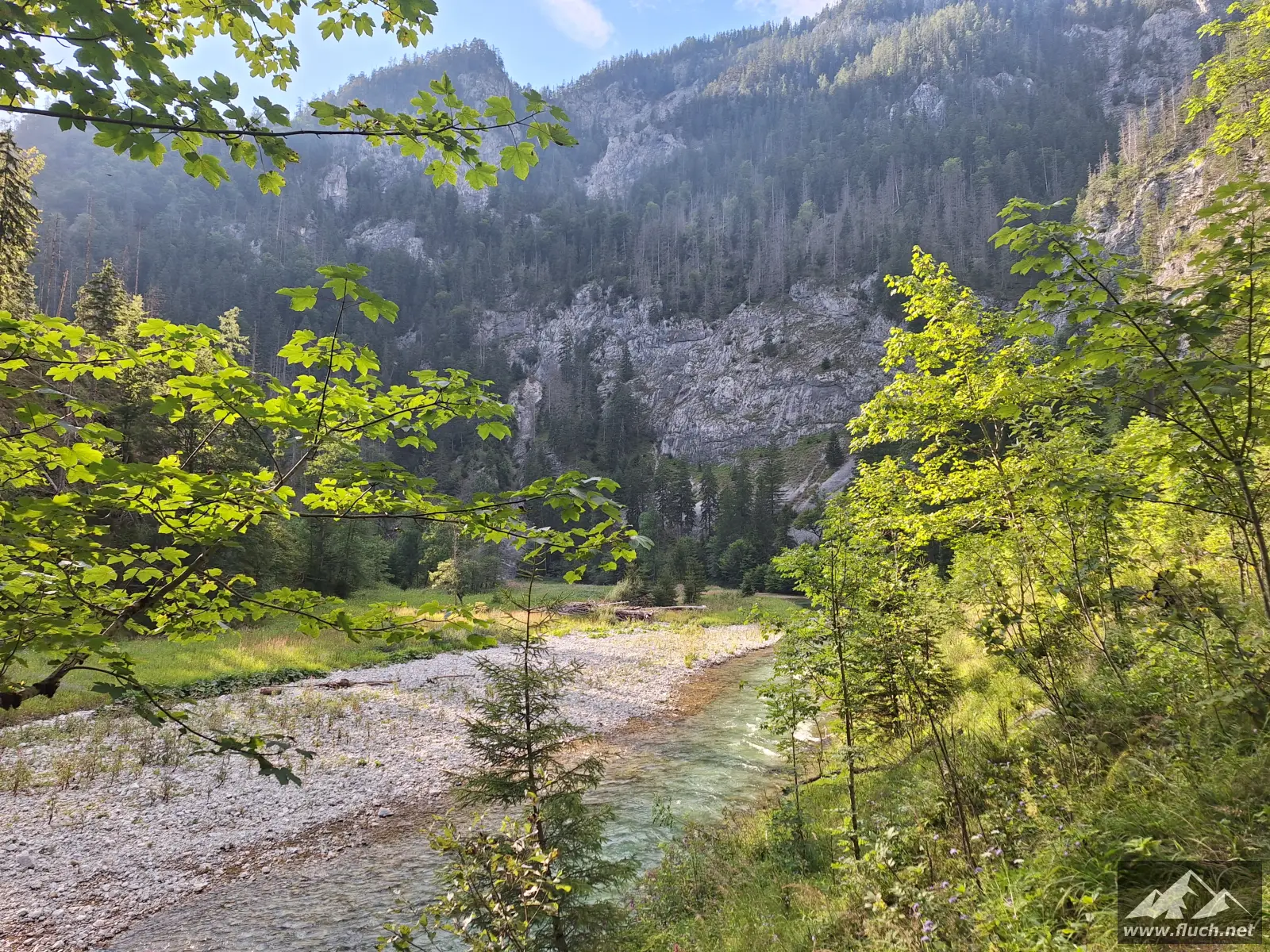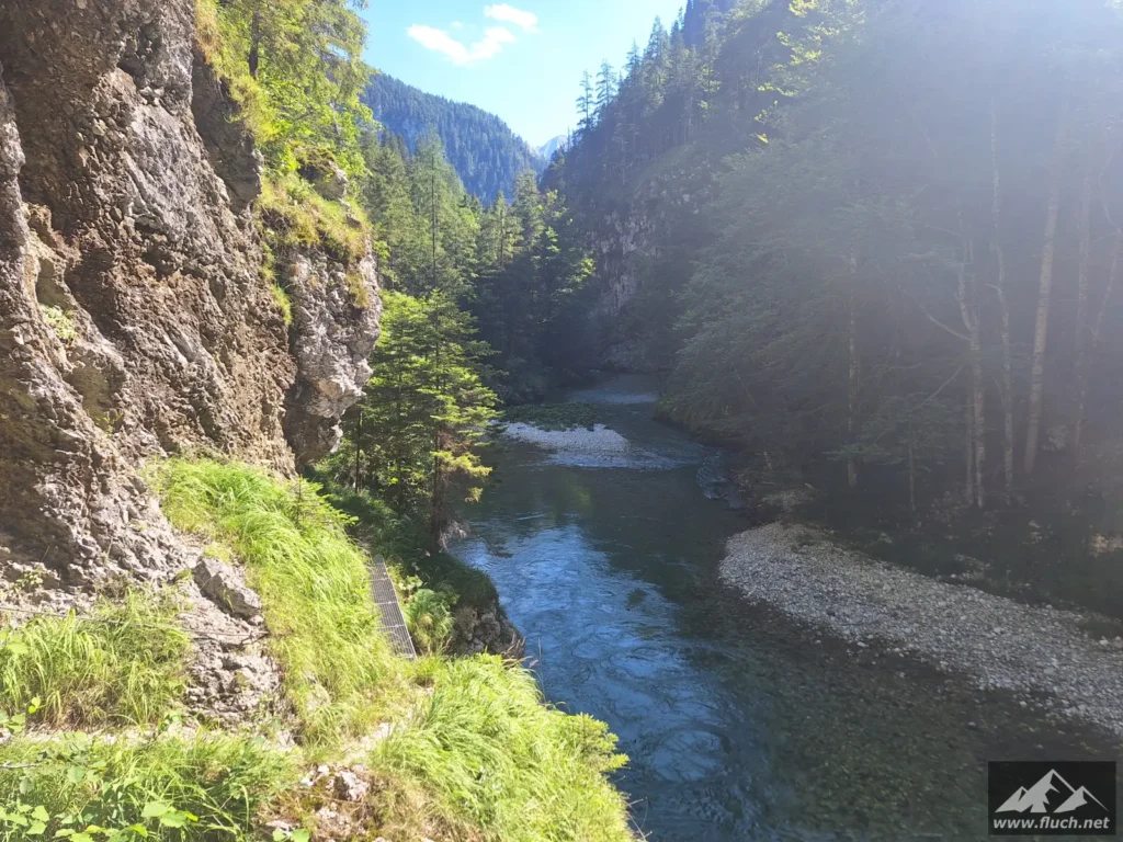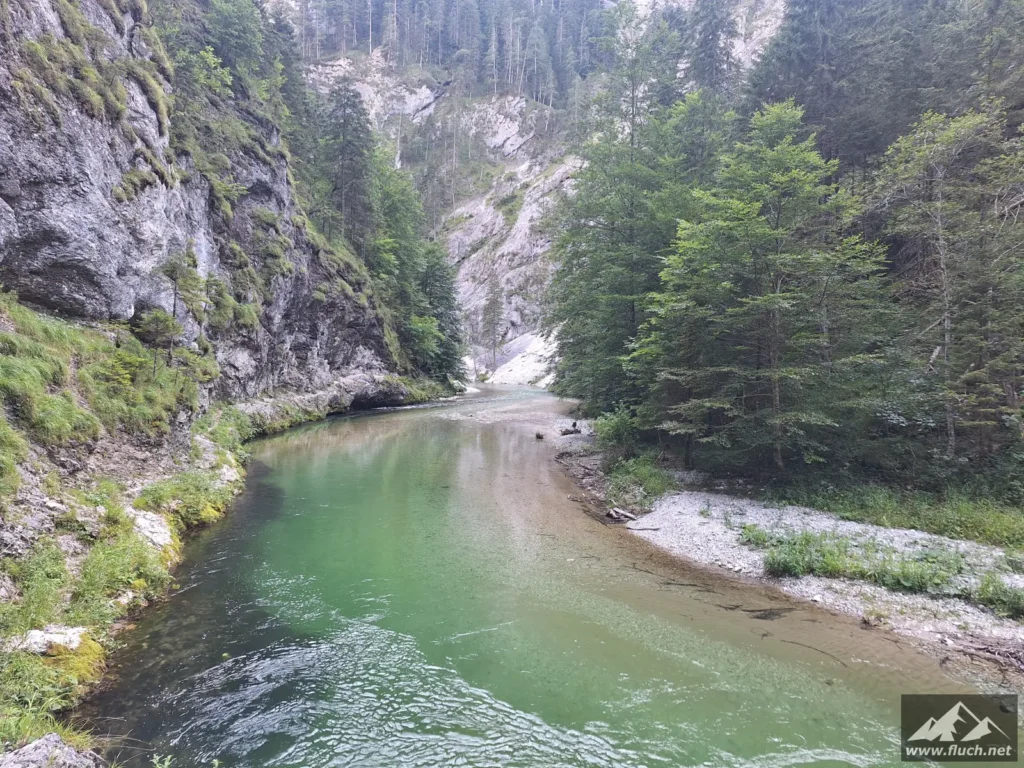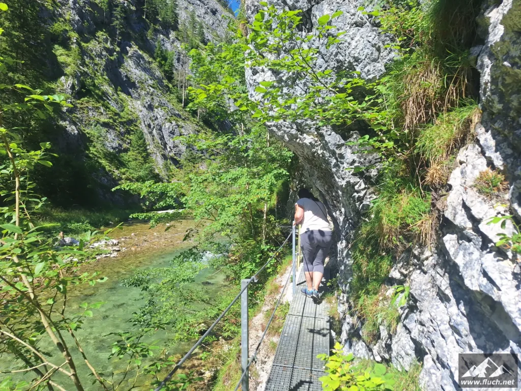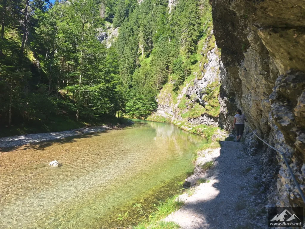 Direkt an der Salza entlang geht es unschwierig hinein bis zur ersten Brücke, dort befindet sich auch eine Sitzgelegenheit für eine kleine Pause.