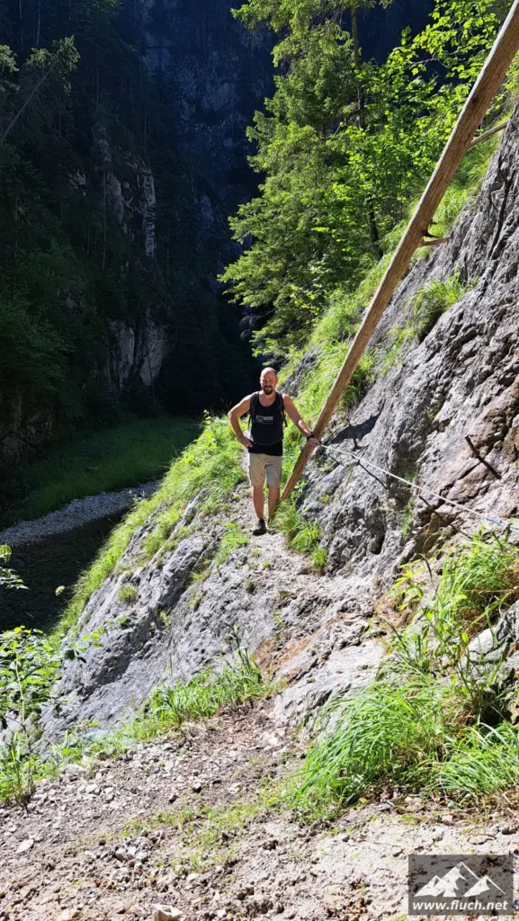Nach der Brücke wird der Steig dann durchgehend schmäler und auch teilweise ausgesetzter, Trittsicherheit und Schwindelfreiheit sind hier schon angebracht.